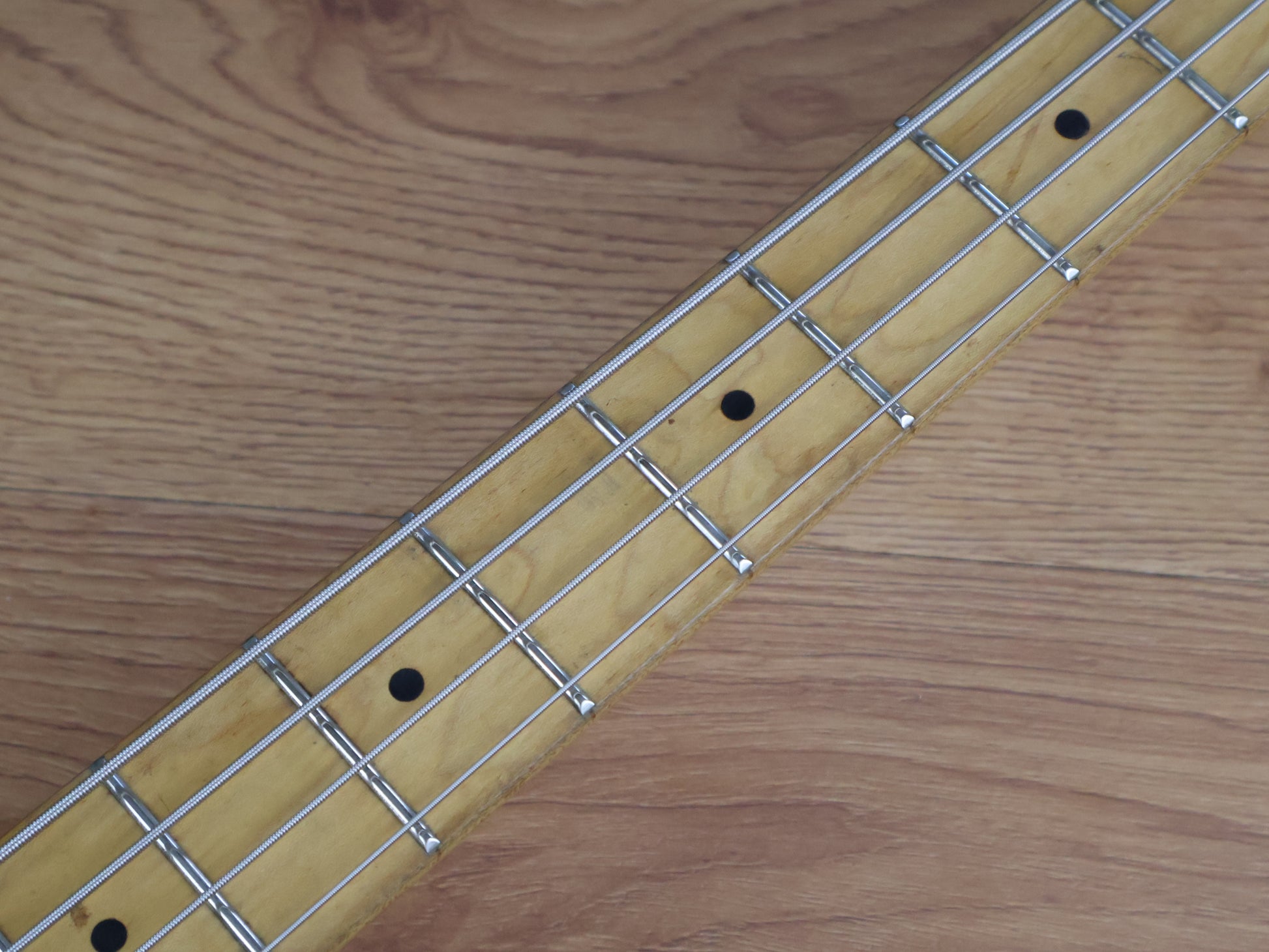 Made by Cort-tek for Ibanez in the mid 1990's, this Silver Cadet PJ Bass features a solid body with a metallic purple finish bolted to a maple neck and fingerboard (42mm nut width, 34" scale length). Weighing 3.2kg's, it appears all original as pictured.