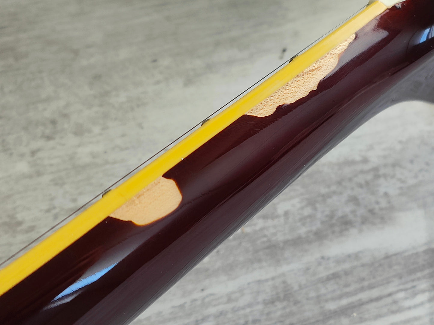 Overall good condition as pictured with a straight neck and plenty of life in the frets. There is a previous repair to the side of the neck where the paint has chipped off, the area was refinished in clear and is almost undetectable in the hand with no sharp edges or impact on playability, it's purely a cosmetic flaw.