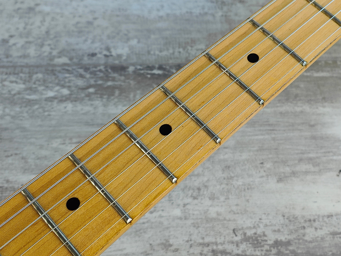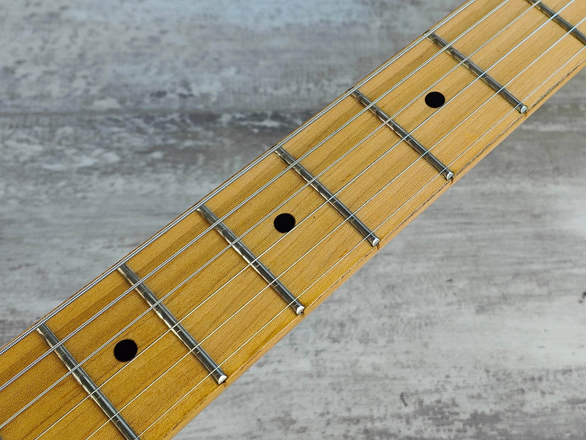 Made in Korea during the 1990's, the Torch Vintage Series TL54BTS was their affordable take on the '54 Fender Telecaster. With a solid body wearing a transparent blonde finish bolted to a one-piece maple neck (43mm nut width, 21 frets), it weighs just over 4kg's.