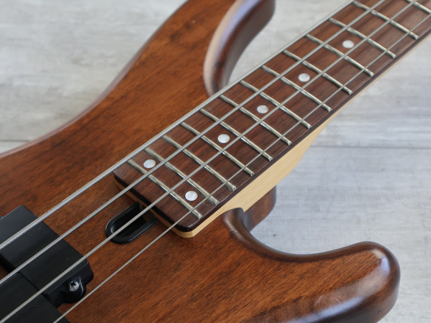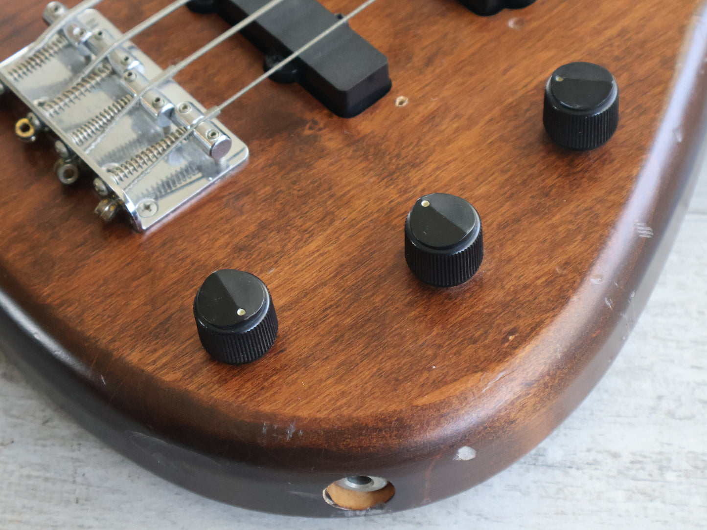 Made in Taiwan in the 1990's, the Motion B series are nice compact bass guitars that are perfect for smaller players or guitarists dabbling in the 4 string world. Natural stain on the body with a maple neck and 24 fret fingerboard (820mm scale length), weighs 3kg's. Loaded with passive PJ pickups controlled by volume, tone and balancer knobs.