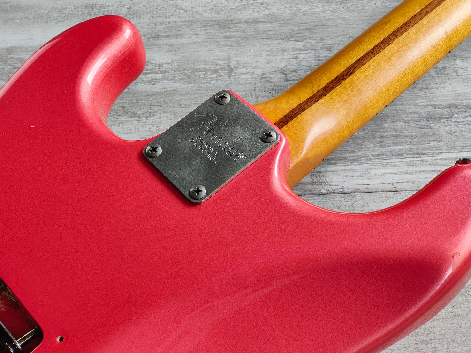 Made in Japan by the Fujigen factory in 1991, this is a "Standard" model Stratocaster that was designed to be closer to the American Standard model instead of a vintage reissue.