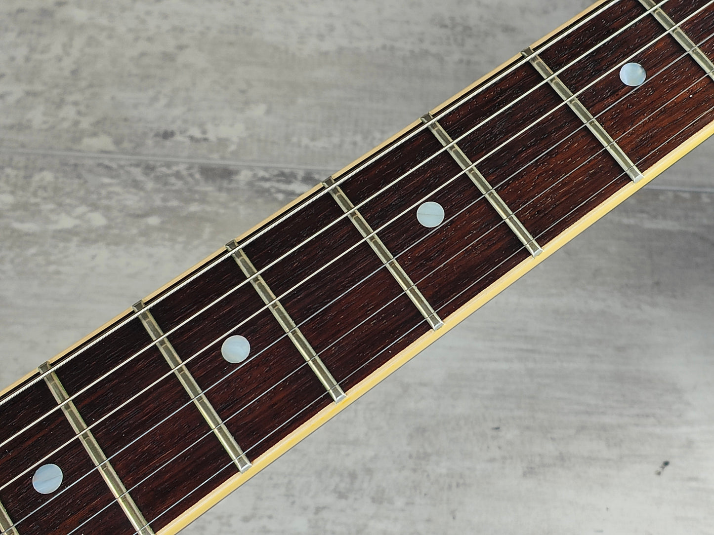 Good overall condition with a few minor dings here and there. Received a full professional service prior to listing including new strings, fretboard oil, fret polish and a truss adjustment, plays and sounds great. Frets have some light wear but are shiny and play smoothly.