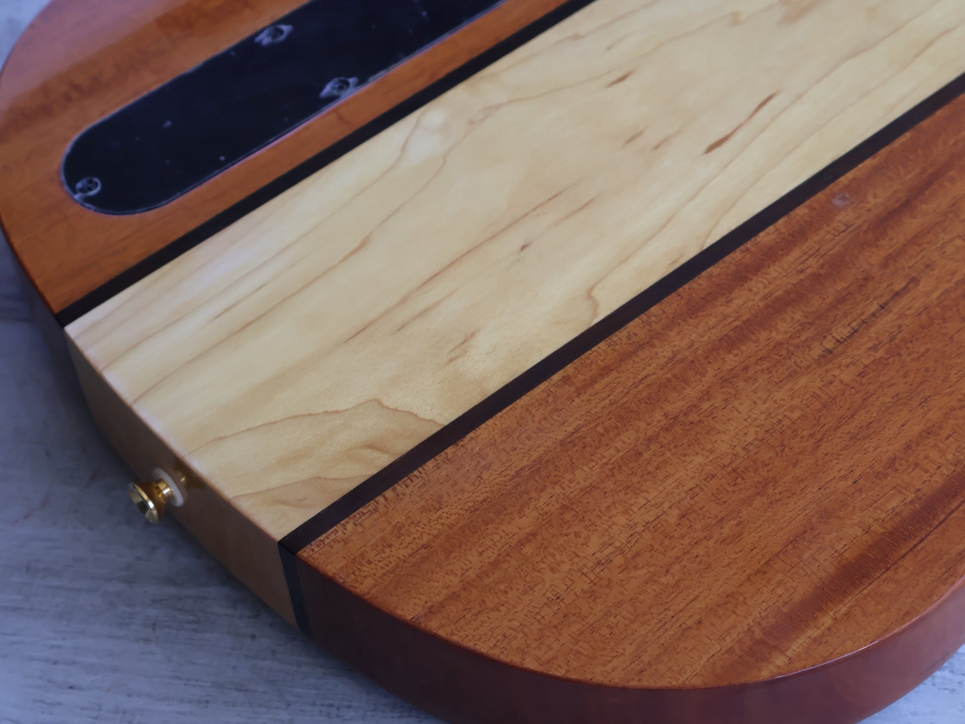 Made in Korea in the early 1990's, the EG-1101N was part of BC Rich's "Custom Series" of vintage inspired instruments. Mahogany/rosewood/maple body with a natural finish bolted to a scarf maple neck and a 24 fret rosewood fingerboard, it weighs 3.8kg's. Loaded with BC Rich Custom humbuckers and a BC Rich bridge, it appears to be all original.