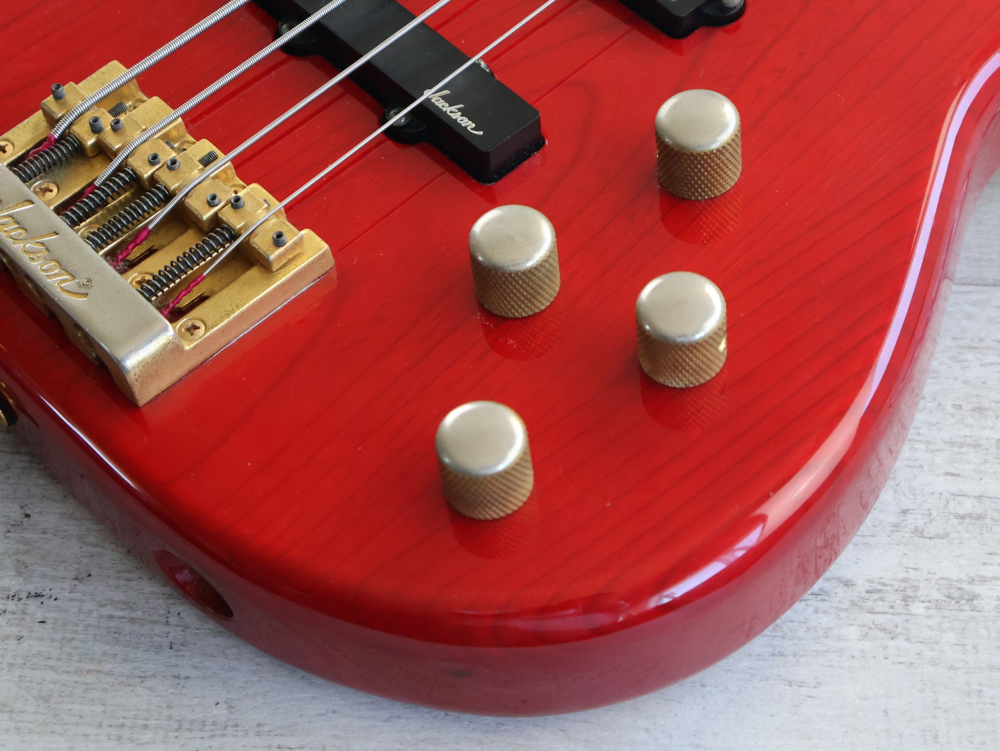 Loaded with PJ pickups and a Low Impedence Jackson JE-2000 system controlled by volume, treble, bass and pickup blend knobs along with Jackson branded tuners and a Jackson bridge, this one appears all original.