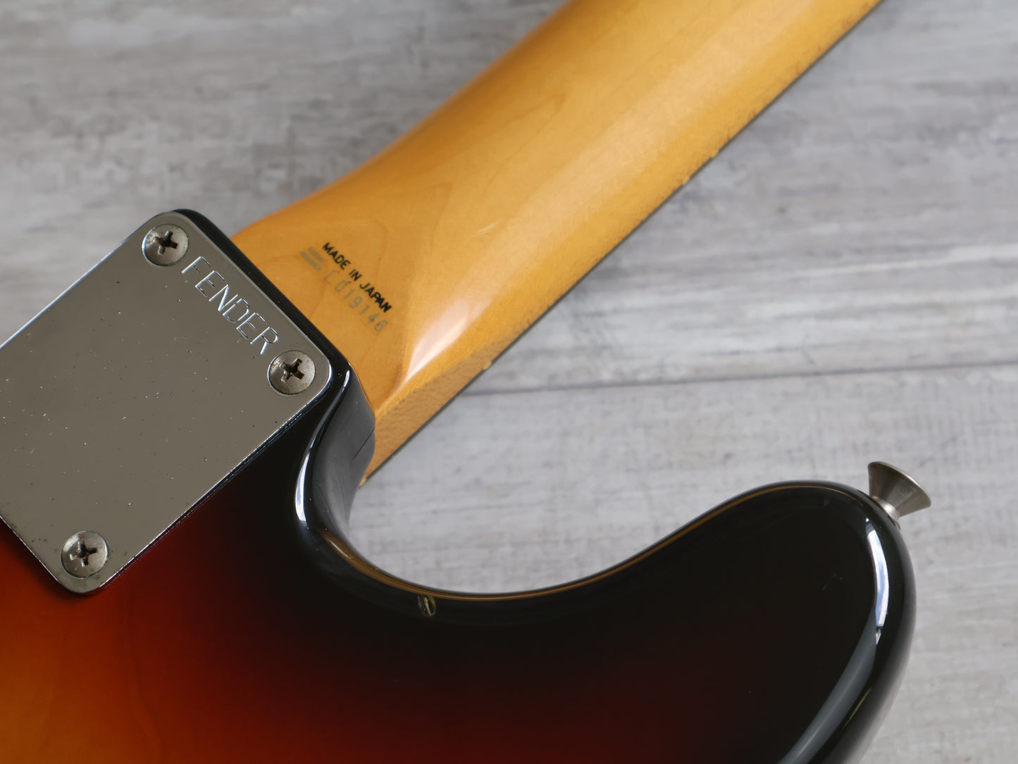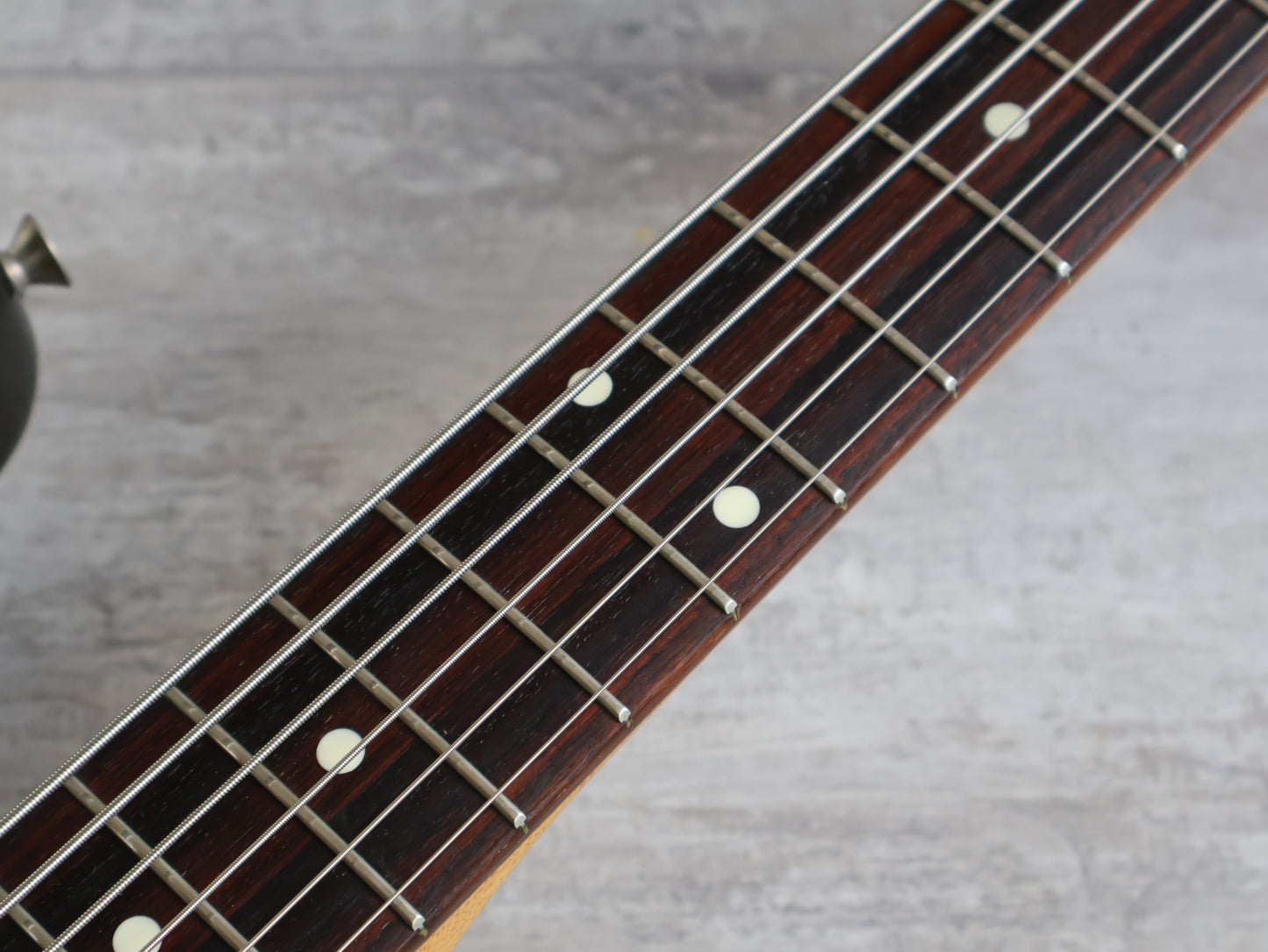 Loaded with the original JG-SINGLE pickup set, original pots and wiring and all original hardware with the exception of an upgraded Mastery bridge that gives this the edge as a players bass over a fully factory original model.