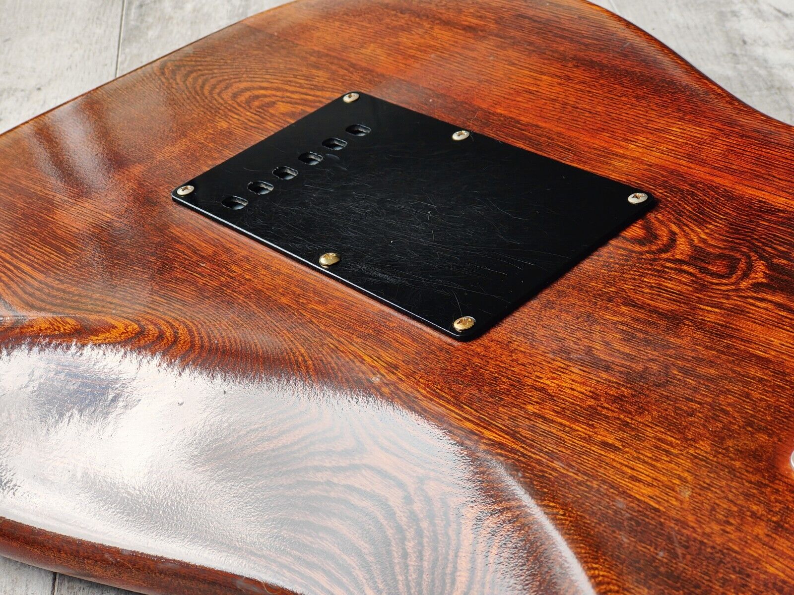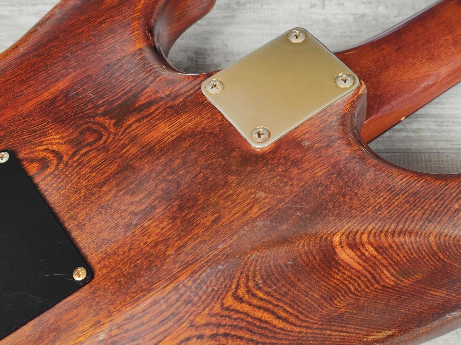 This one wears a classy walnut stain on the ash body with the same stain on the maple neck and headstock almost giving it that antique furniture look. Rosewood fingerboard (42mm nut width, 7.25" radius), it weighs a very nimble 3.2kg's.