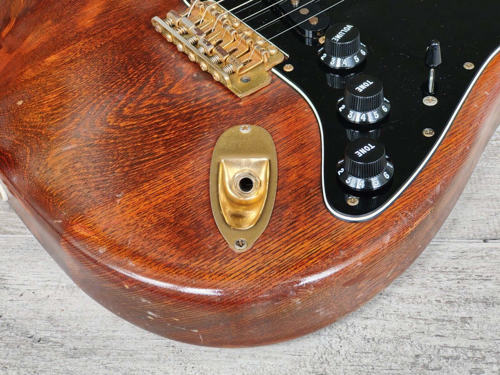 One of the classiest looking Stratocaster's we've had come through in a long time, this is a Fujigen built custom order model from Fender Japan in a walnut/gold outfit. The "Order Made" program from Fender Japan was their take on the Custom Shop, featuring mostly limited run or on-off guitars that weren't available in their regular catalogue.