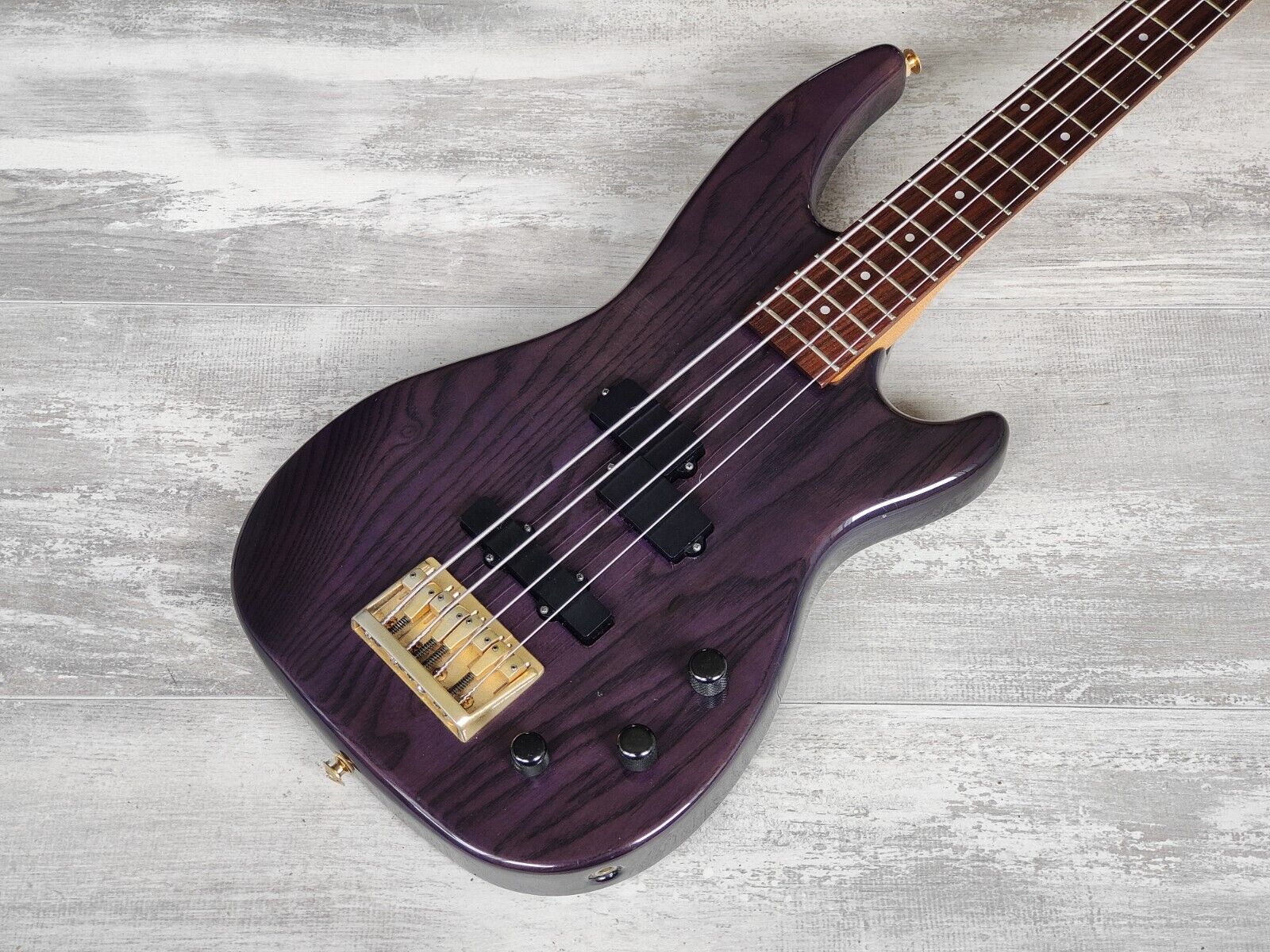 Made in Japan in the early 90's, the PJB series from Greco were modern PJ designs. Ash body with a transparent purple finish, 820mm scale length 22 fret rosewood fingerboard with a slim maple neck, weighs 3.8kg's. Loaded with passive PJ pickups controlled by two volume knobs and a master tone.