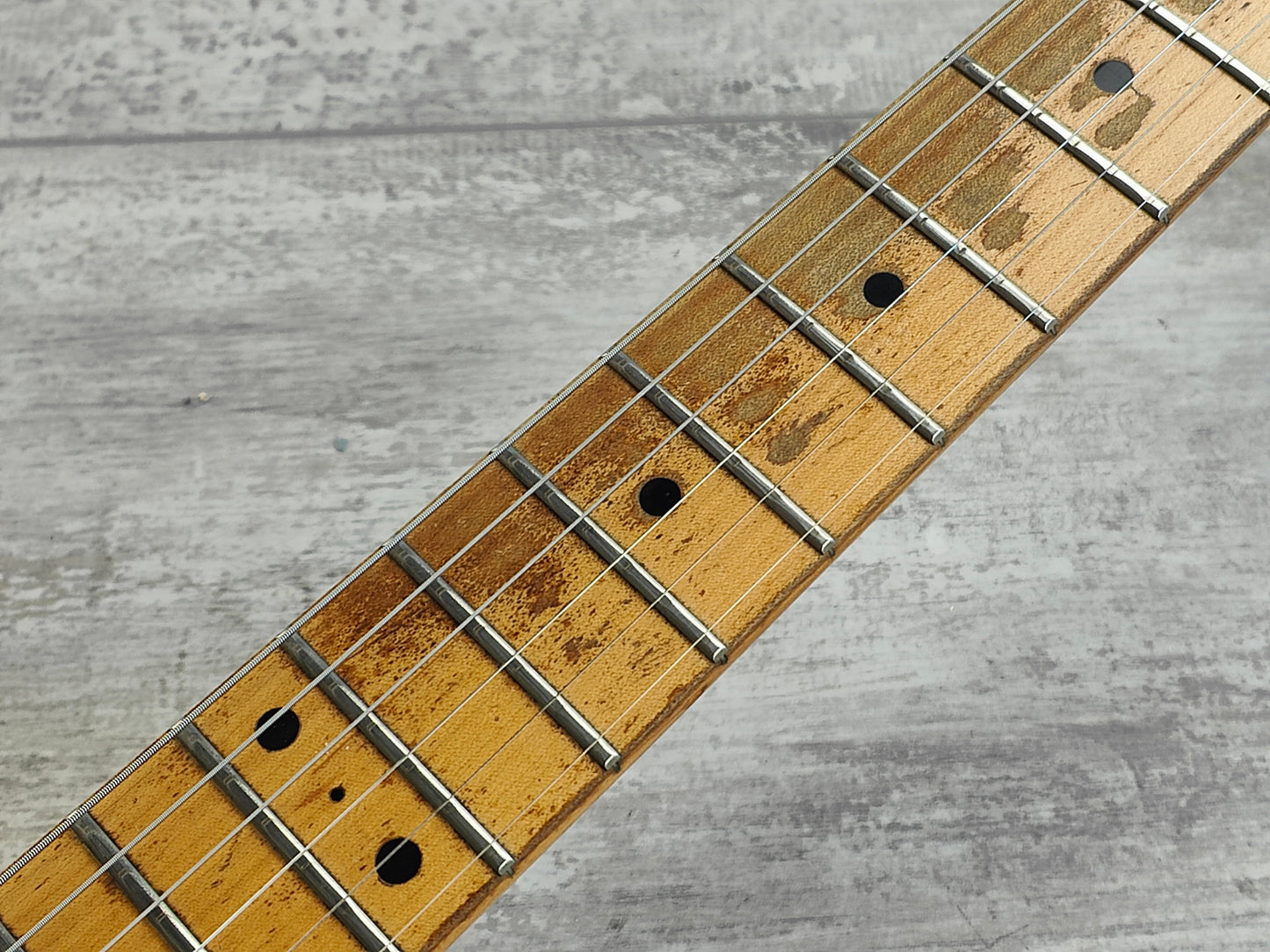 Serviced prior to listing including a truss adjustment and fret polish. The frets show signs of wear (as they should on a Gilbert shedder) but are shiny and have life left, the neck is straight and plays nicely with only cosmetic wear.