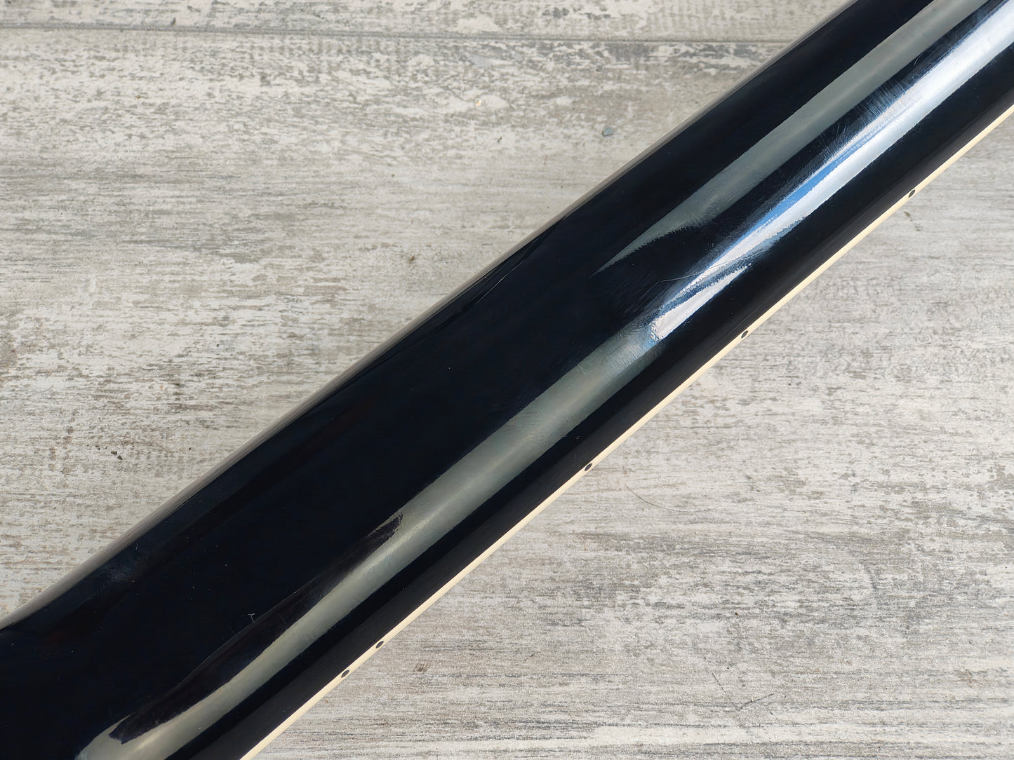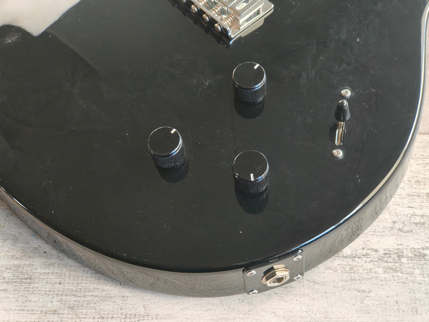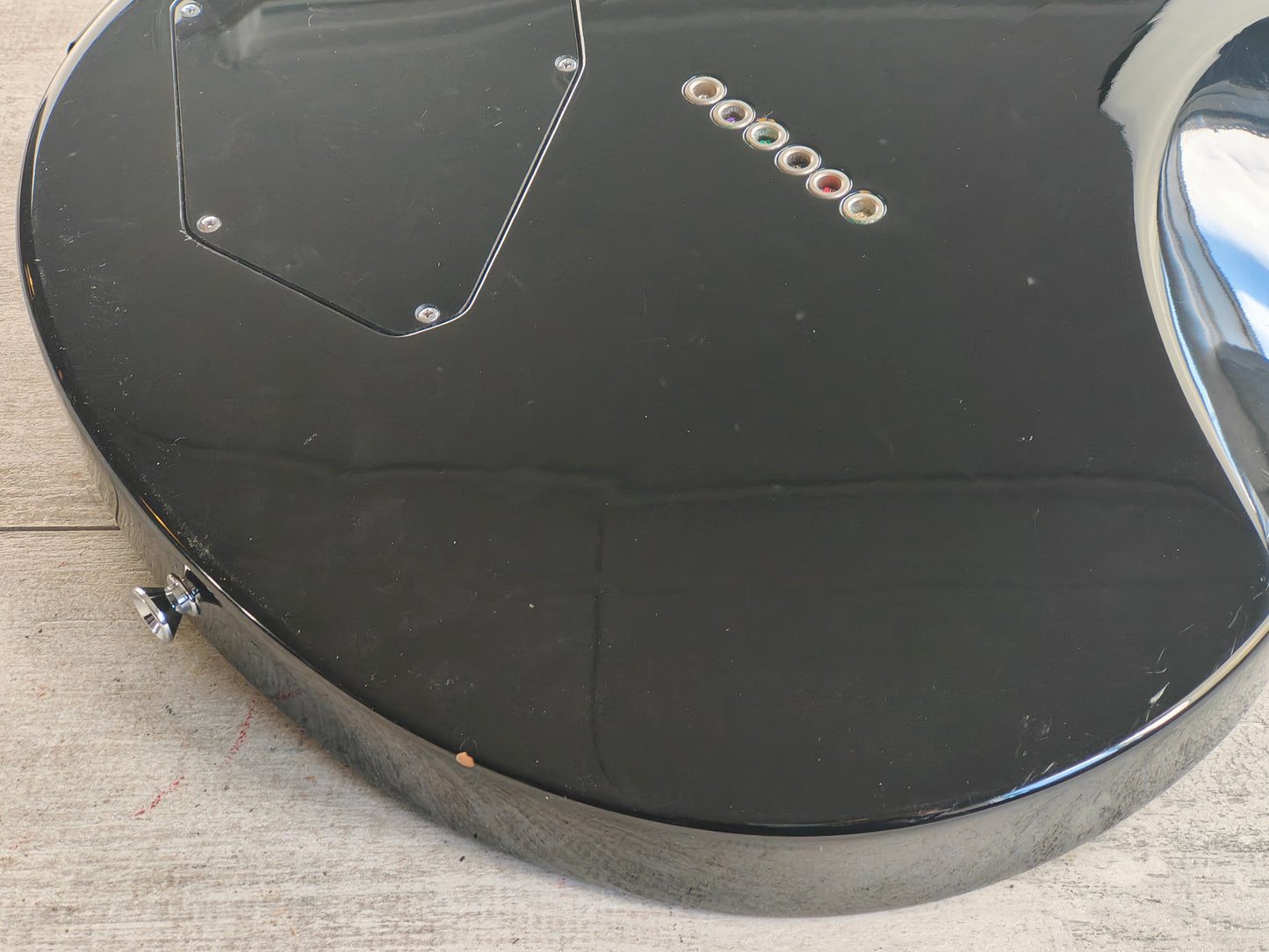 Made in Japan under the watchful eye of ESP in 1993, the EI-110LP was a new model that was inspired by the ESP signature model for Inoran of Luna Sea. With an alder body bolted to a maple neck with a 22 fret rosewood fingerboard (44mm nut width, 628mm scale length), it weighs 3.4kg's. Loaded with three mini rail humbuckers (unbranded) controlled by a 5-way selector, the hardtail bridge and Gotoh tuners give plenty of stability.