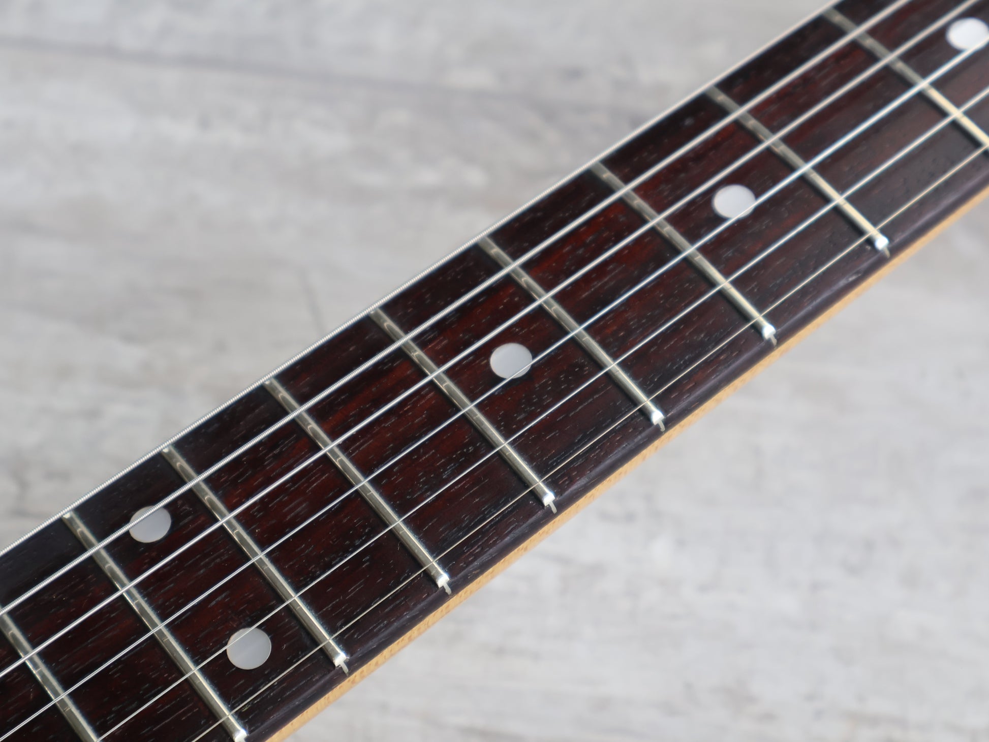 Received a full professional setup and service prior to listing including a truss adjustment, fretboard oil and fret polish. The neck is straight and the frets have plenty of life left, overall it's in great used condition for a 30+ year old guitar with light wear and no breaks or repairs.