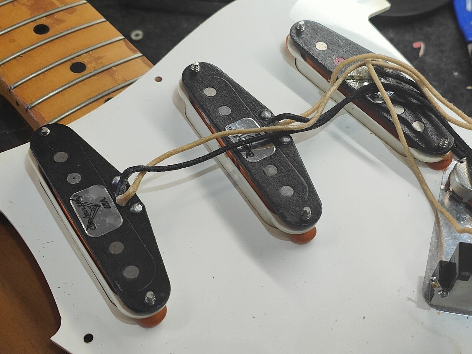 Japanese made by the Fujigen factory in 1993, the ST54-70 was a premium model from the Fender Japan catalog. Looks to be an ash (sen) body with a brown sunburst finish, one-piece maple neck with a '54 V profile and 7.25" radius, loaded with aftermarket Fender Custom Shop single coils controlled by a 5-way selector, this one weighs an uncharactaristically heavy 4.5kg's.