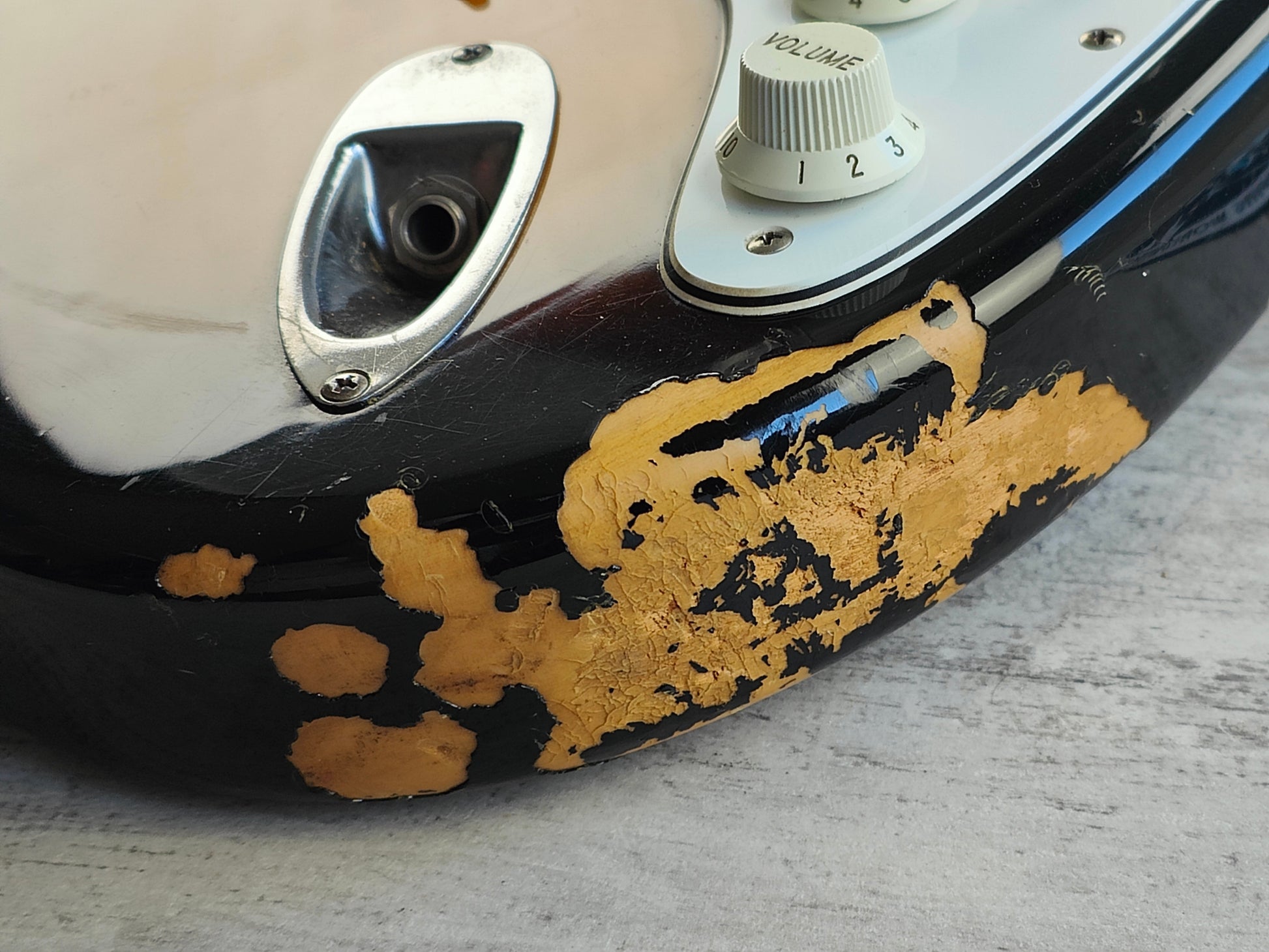 Heavily used condition as pictured with a few chips, dings, bumps and bruises. The neck is straight and the truss works perfectly, the frets are shiny and play smoothly with some light pitting and playwear.