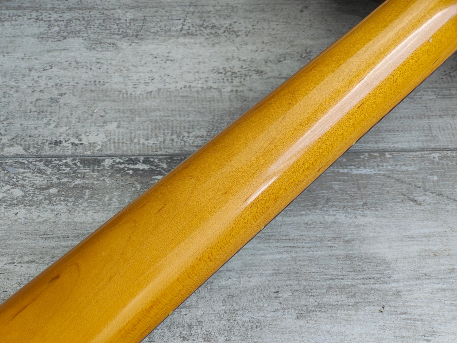Good used condition with light signs of wear and tear as pictured including light surface scuffs but no major bumps/dings of note. The neck is straight and the truss adjusts well, the frets are shiny and have plenty of life. The refinish was an amateur job done with the help of a professional automotive painter, overall it looks decent with a nice bright colour and only a few blemishes.
