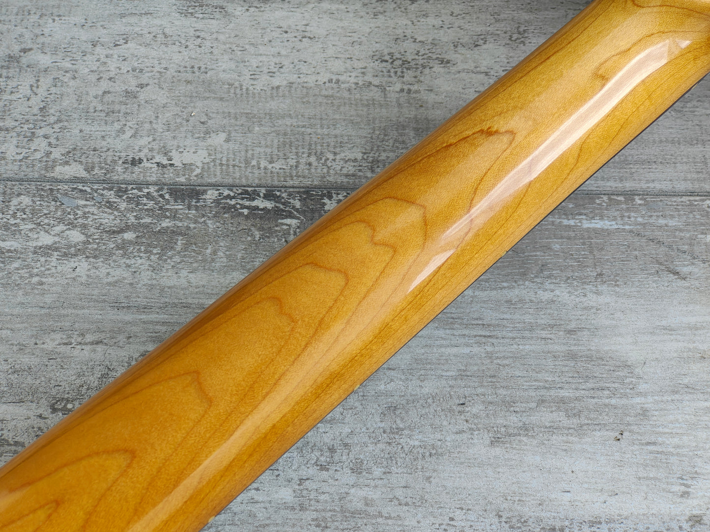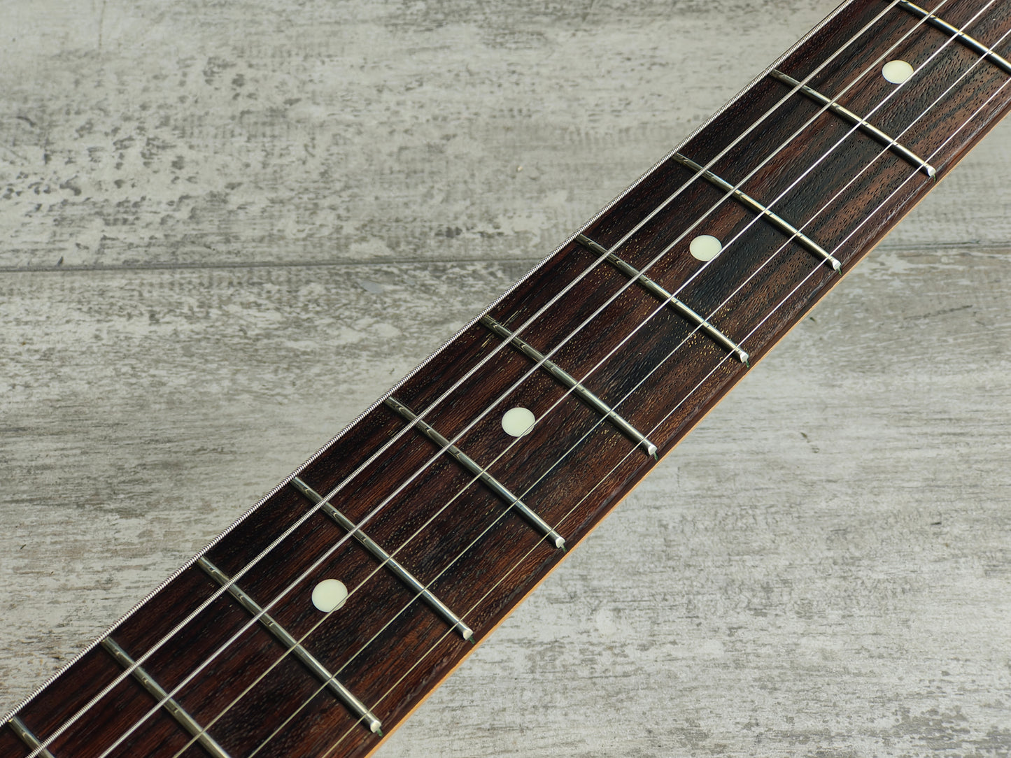 Good used condition with light signs of wear and tear as pictured including light surface scuffs but no major bumps/dings of note. The neck is straight and the truss adjusts well, the frets are shiny and have plenty of life. The refinish was an amateur job done with the help of a professional automotive painter, overall it looks decent with a nice bright colour and only a few blemishes. Could use a setup and service but it's good to go as it sits.