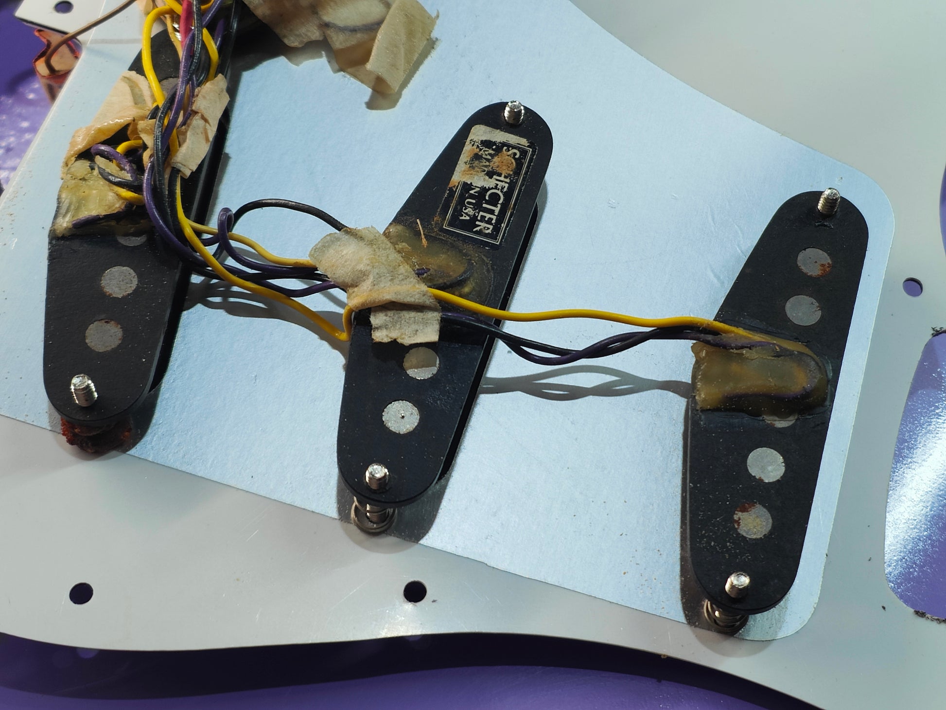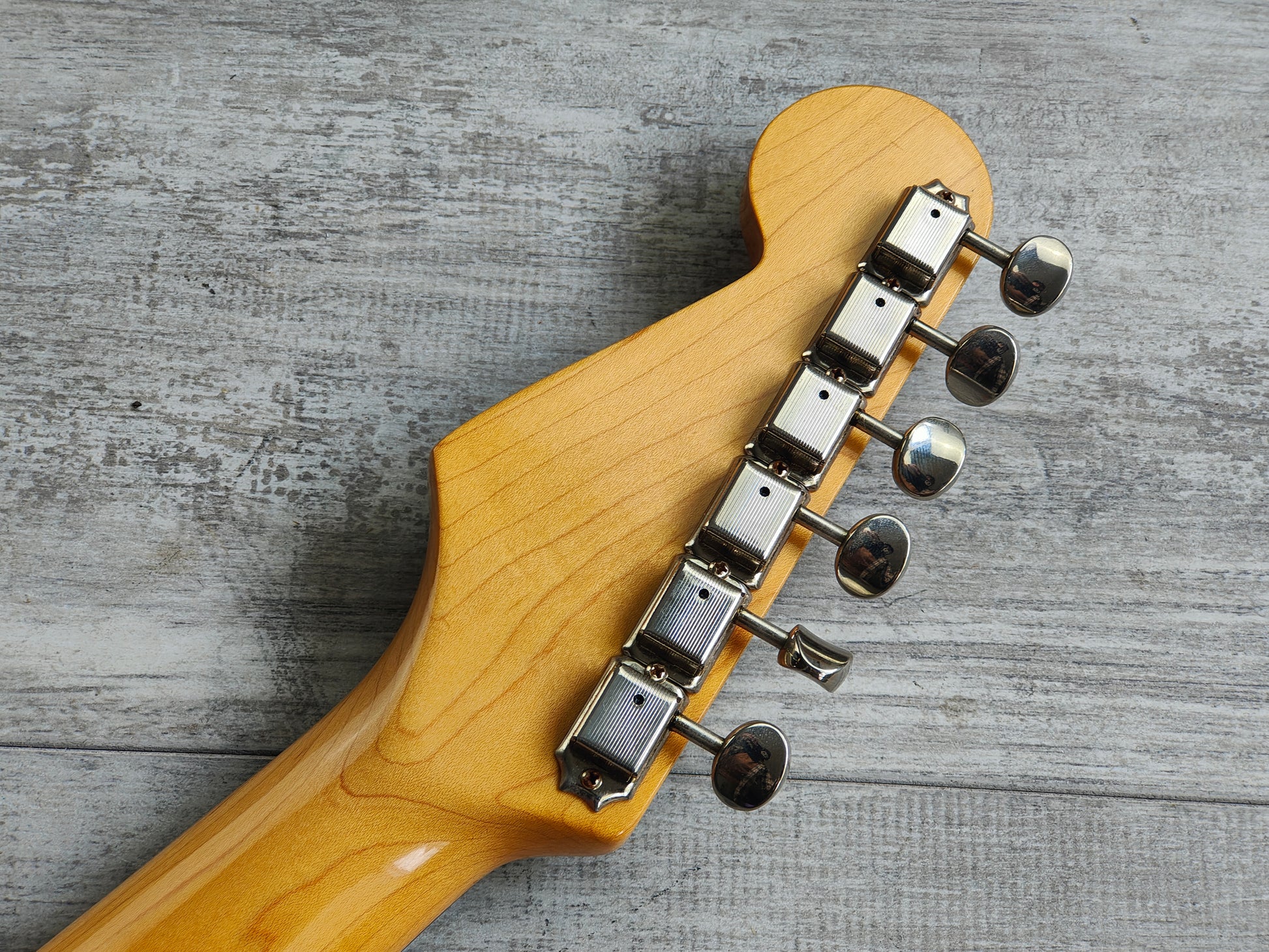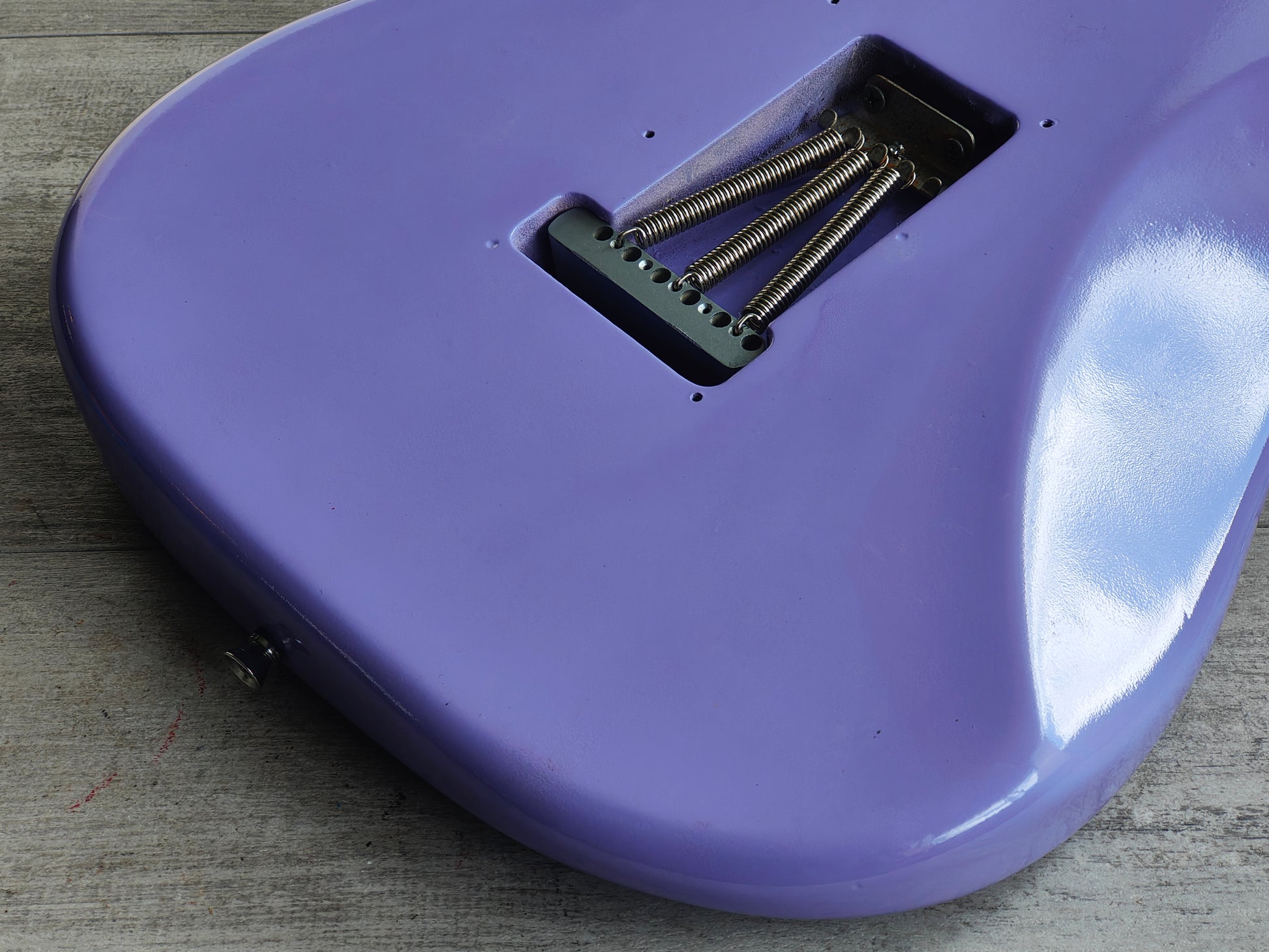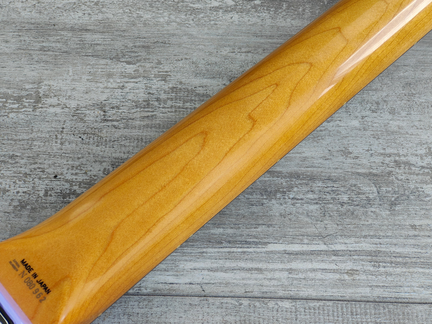 Made by the Fujigen factory in 1993, this '62 reissue from Fender Japan is loaded with a set of Schecter pickups with some custom wiring and wears an amateur Purple refinish that was done by the previous owner. Solid body bolted to a '62 profile maple neck and slab rosewood fingerboard (43mm nut width, 7.25" radius), it weighs 3.6kg's.