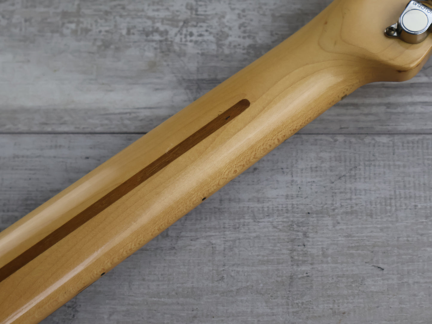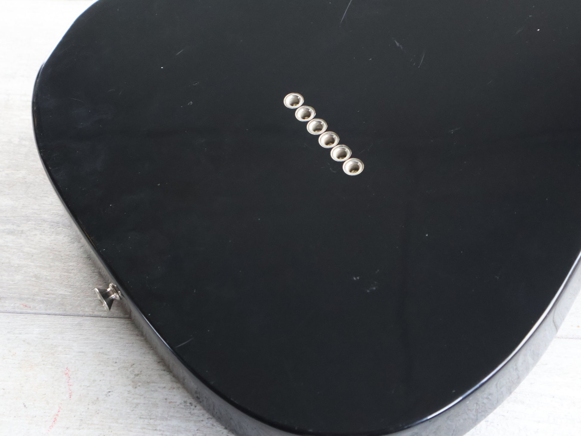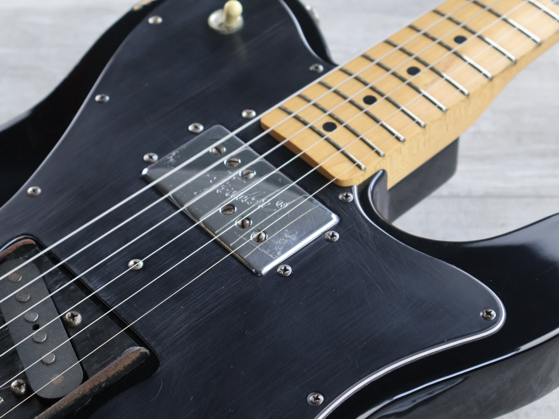 Made by the Fujigen factory in 1993, the Fender TC72-70 was their reissue of the 1972 Telecaster Custom. Wearing a glossy black finish on a basswood body, one-piece maple neck (7.25" radius, 21 frets) and it weighs a nimble 3.2kg's. Original Fender Japan pickups (a TL-CURRENT single coil in the bridge and a TN-HUMBUCKING wide-range in the neck) and string-through ash-tray bridge, it appears to be all stock except for the output jack socket and knobs.
