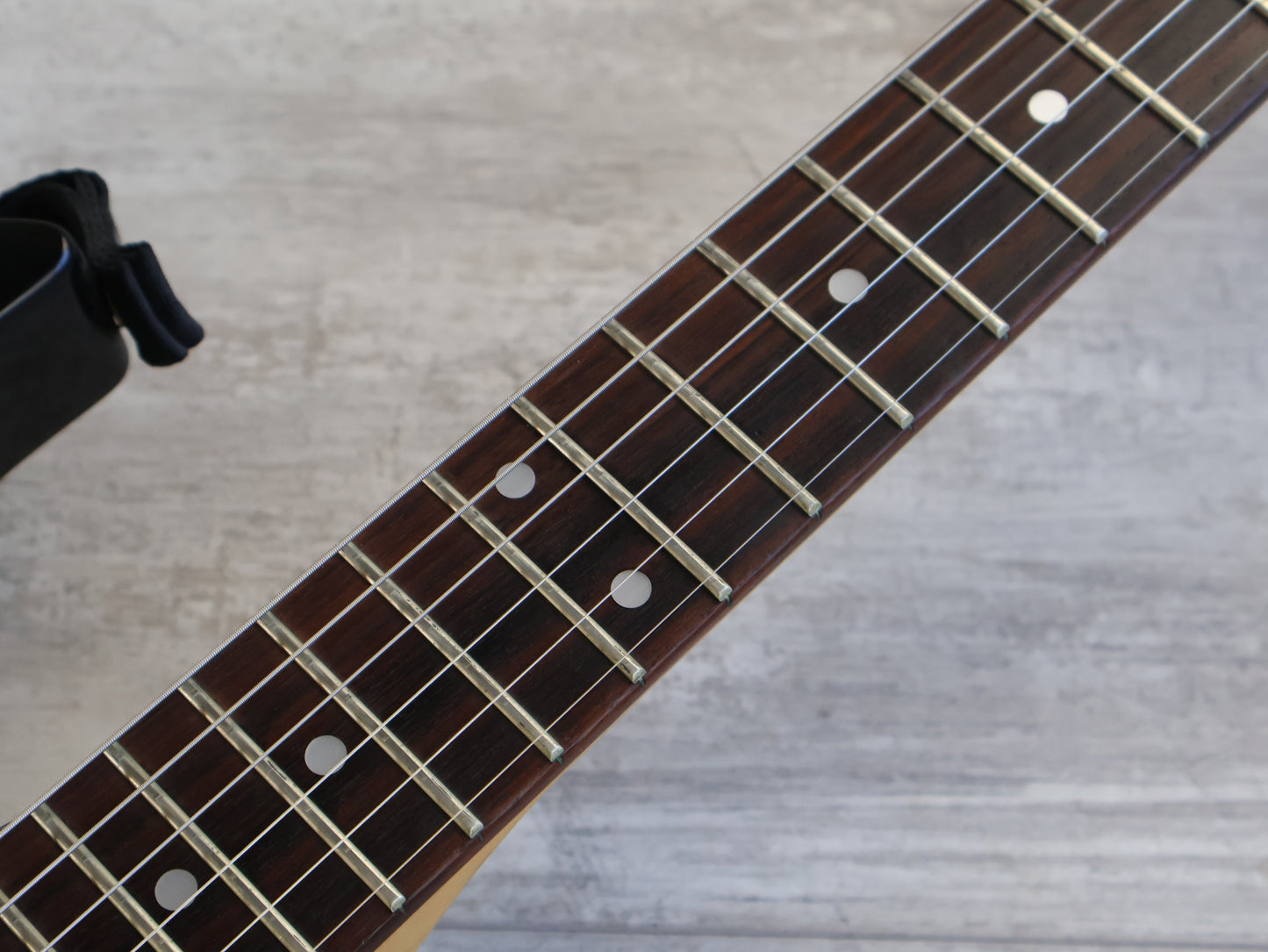 Good used condition as pictured, restrung and given a basic service prior to listing, the frets are shiny and clean with some light pitting and playwear and the neck is straight with a fully functional truss.