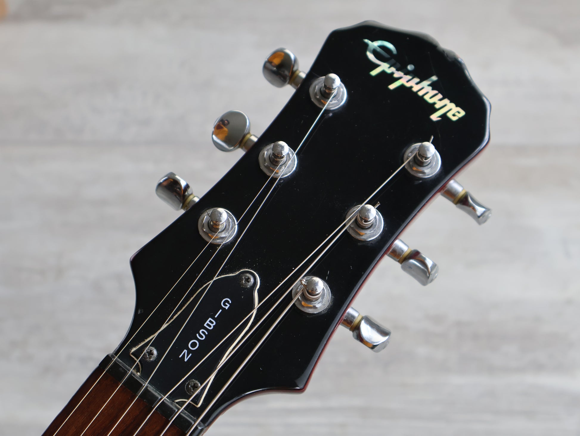 Made by the Samick factory in Korea in late 1994 (a very good period for Epiphone quality), this is an early model G-400 built for our Lefty friends. Weighs 2.9kg's.