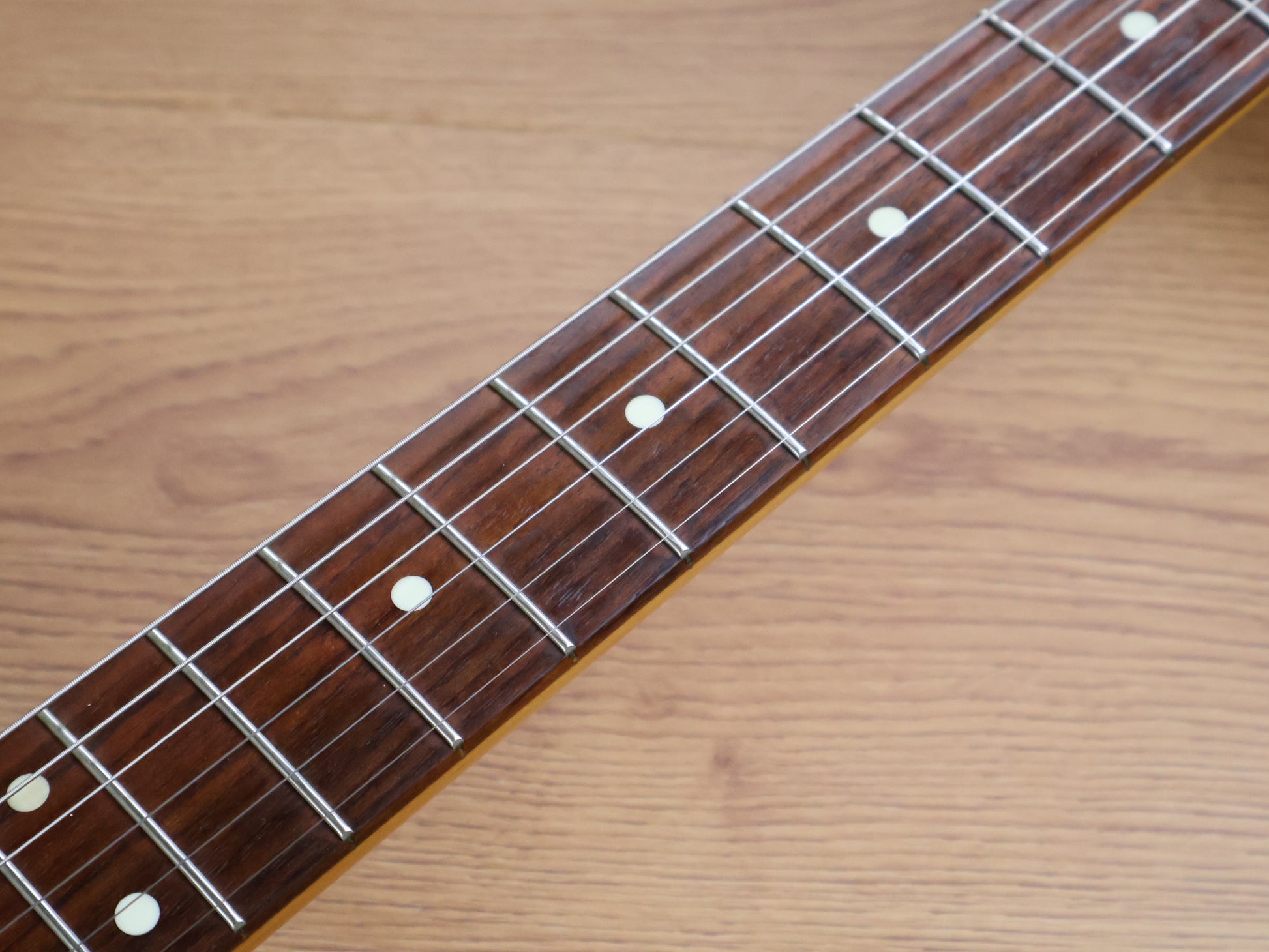 Made by the Fujigen factory in 1994, the ST62-53 was Fender Japan's base model '62 Reissue Stratocaster. Sunburst finish on a basswood body with a maple neck, rosewood fingerboard (7.25" radius), it weighs 3.4kg's. Loaded with the original Fender Japan ceramic single coil pickups controlled by a 5-way selector.