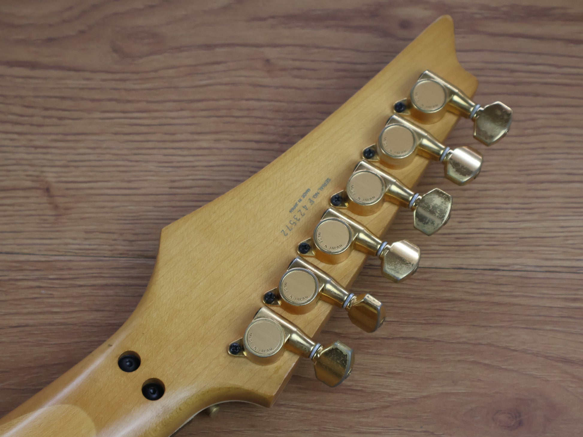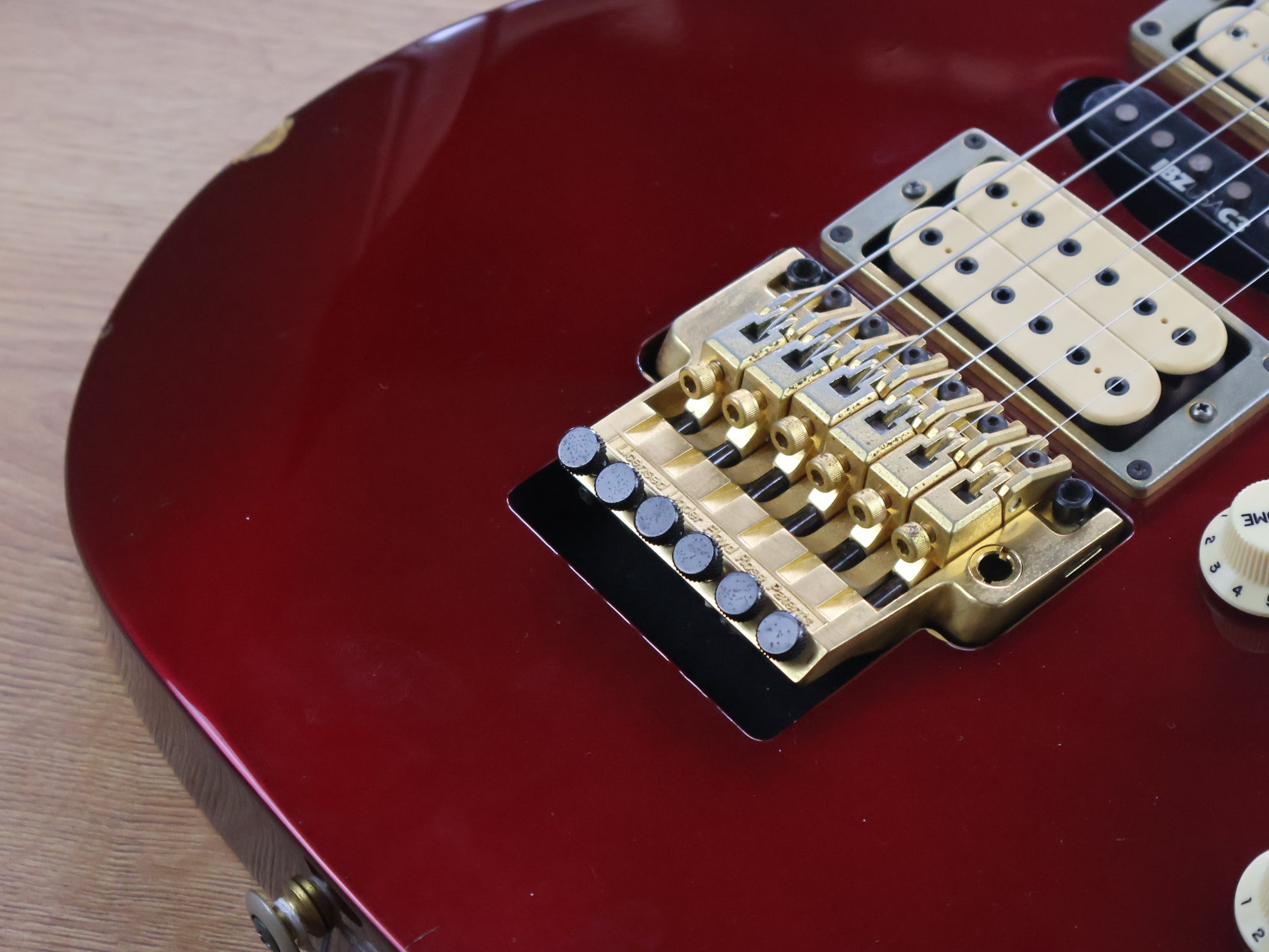 Made in Japan by the Fujigen factory in 1994, the RG770G was a high end offering from Ibanez at the time. Featuring a basswood body with a maple neck and bound 24 fret rosewood fingerboard (648mm scale length), it weighs 3.4kg's. Loaded with a Lo-Pro tremolo system along with the original Ibanez C3 middle pickup flanked by a pair of Dimarzio Super 3/Dual Sound humbuckers.