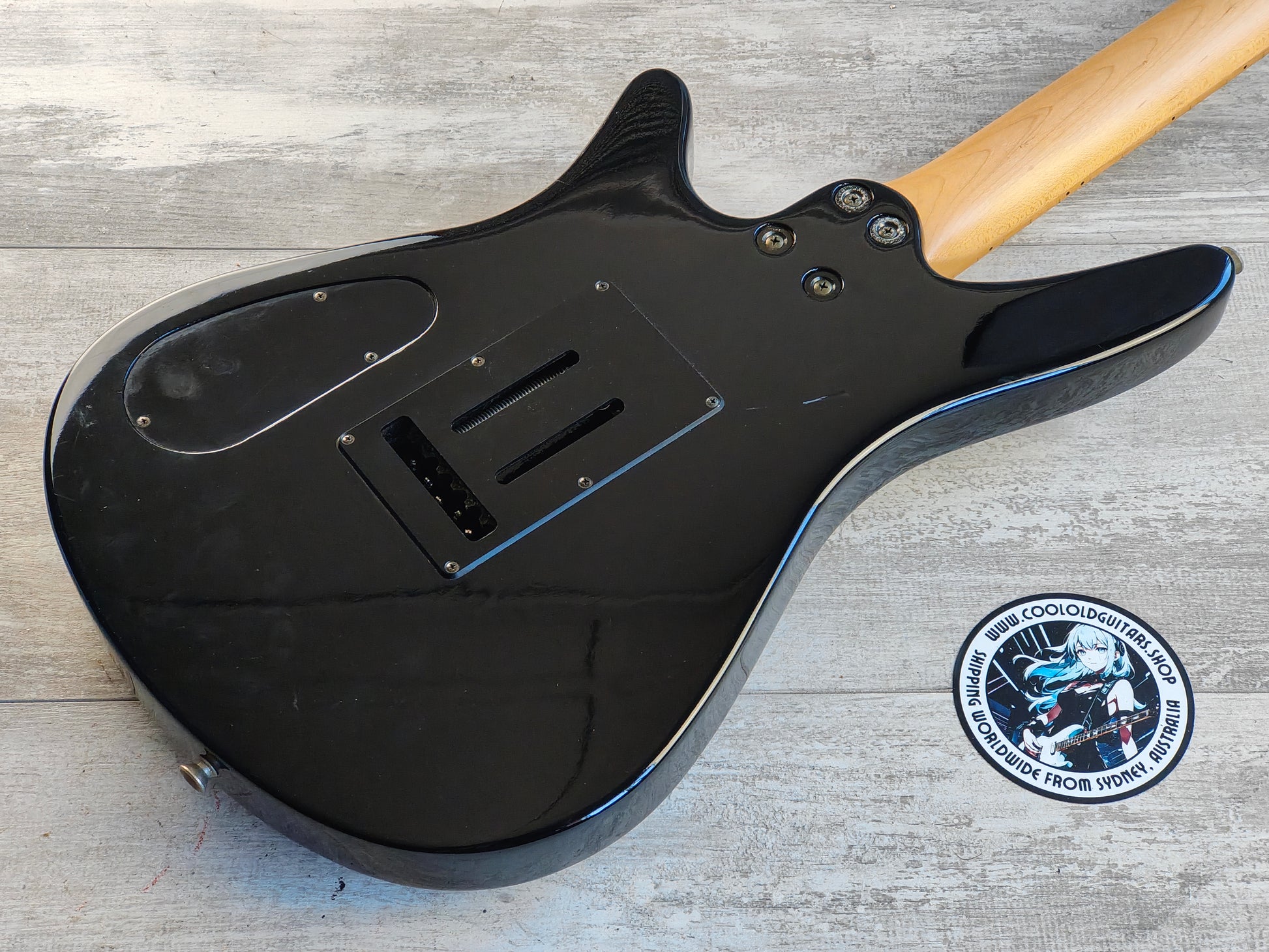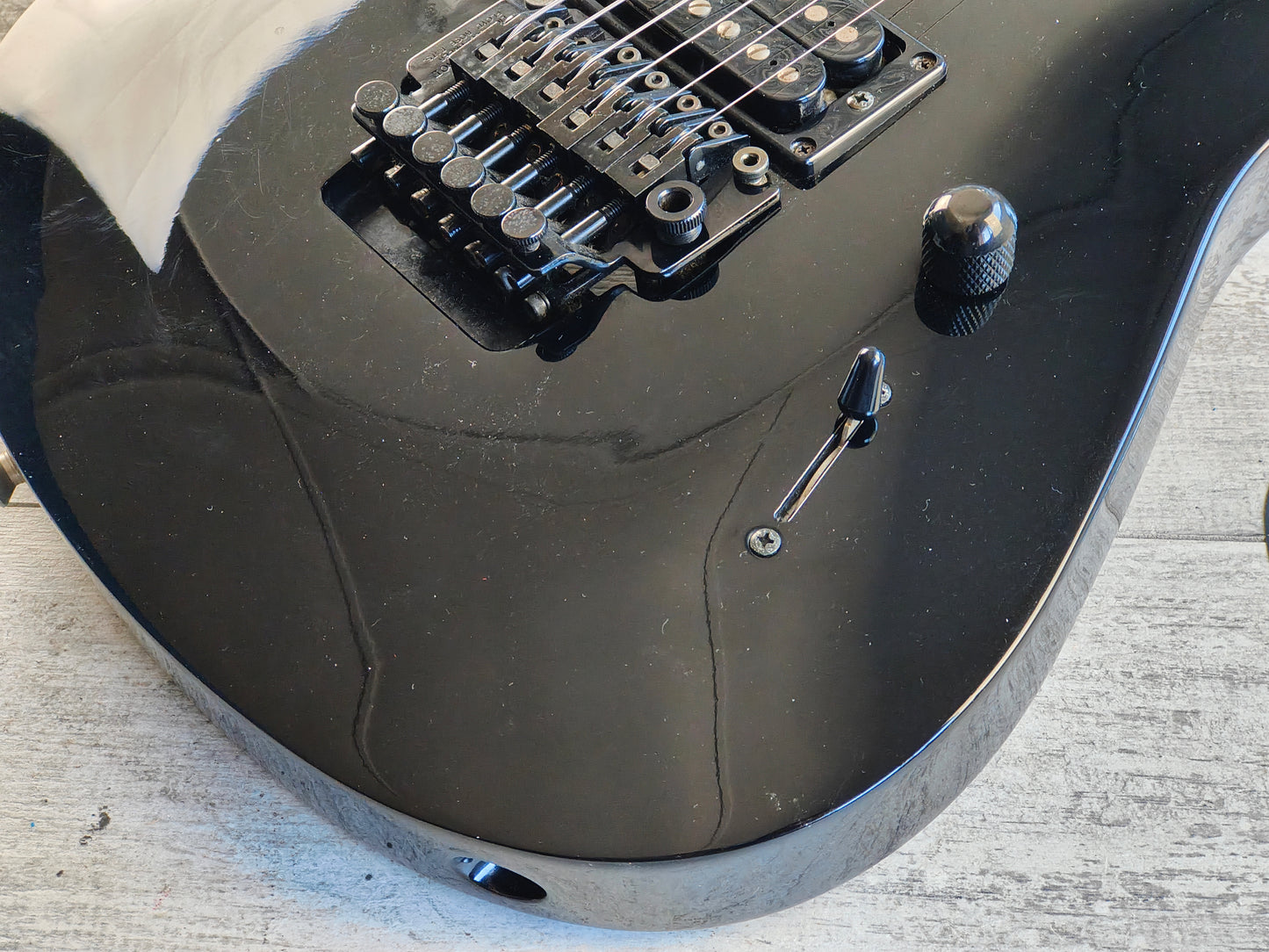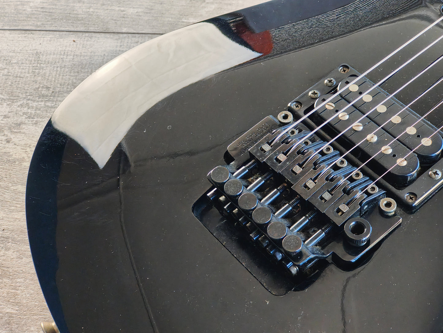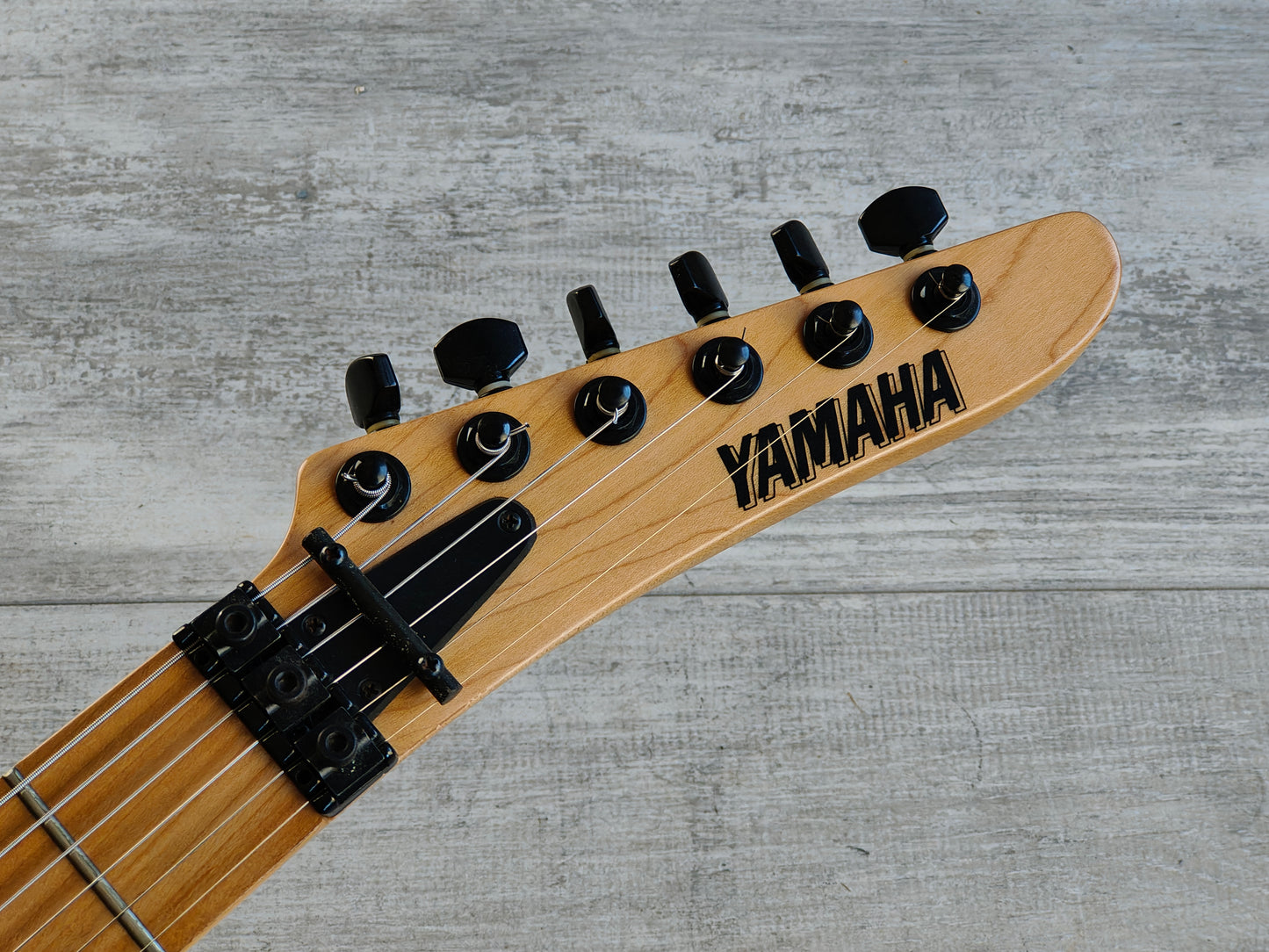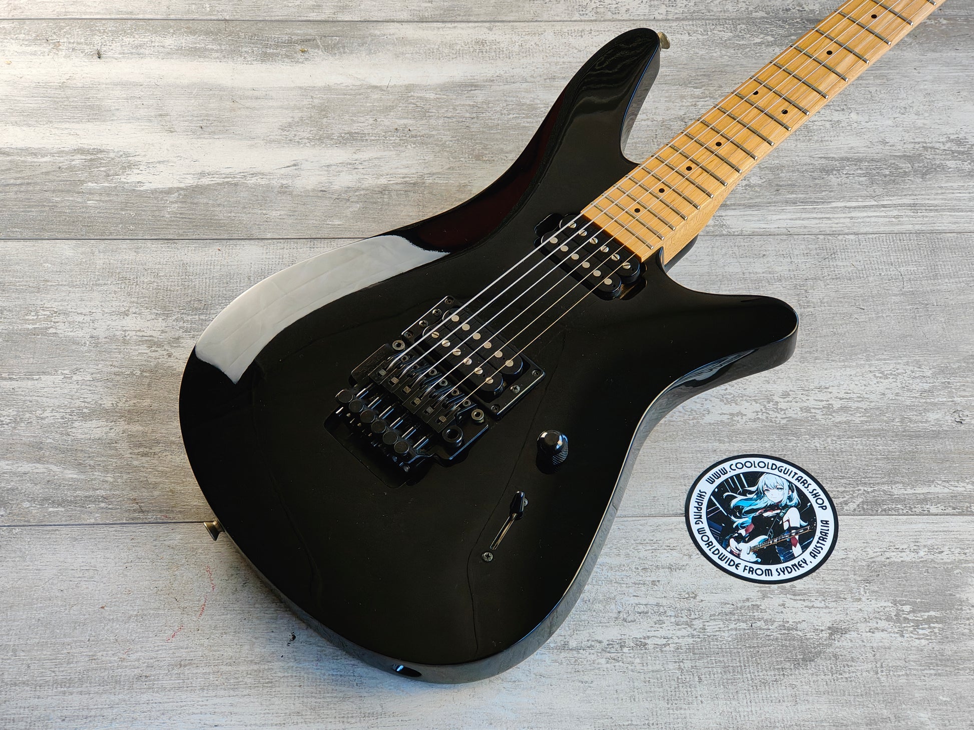 This is a modern MG2S model with a gloss black finish on the basswood body bolted to a slim maple neck that weighs 3.4kg's. Simple master volume layout with two stock Alnico V humbuckers and a three-way switch, it's loaded with the Yamaha RM-PRO II locking tremolo system.
