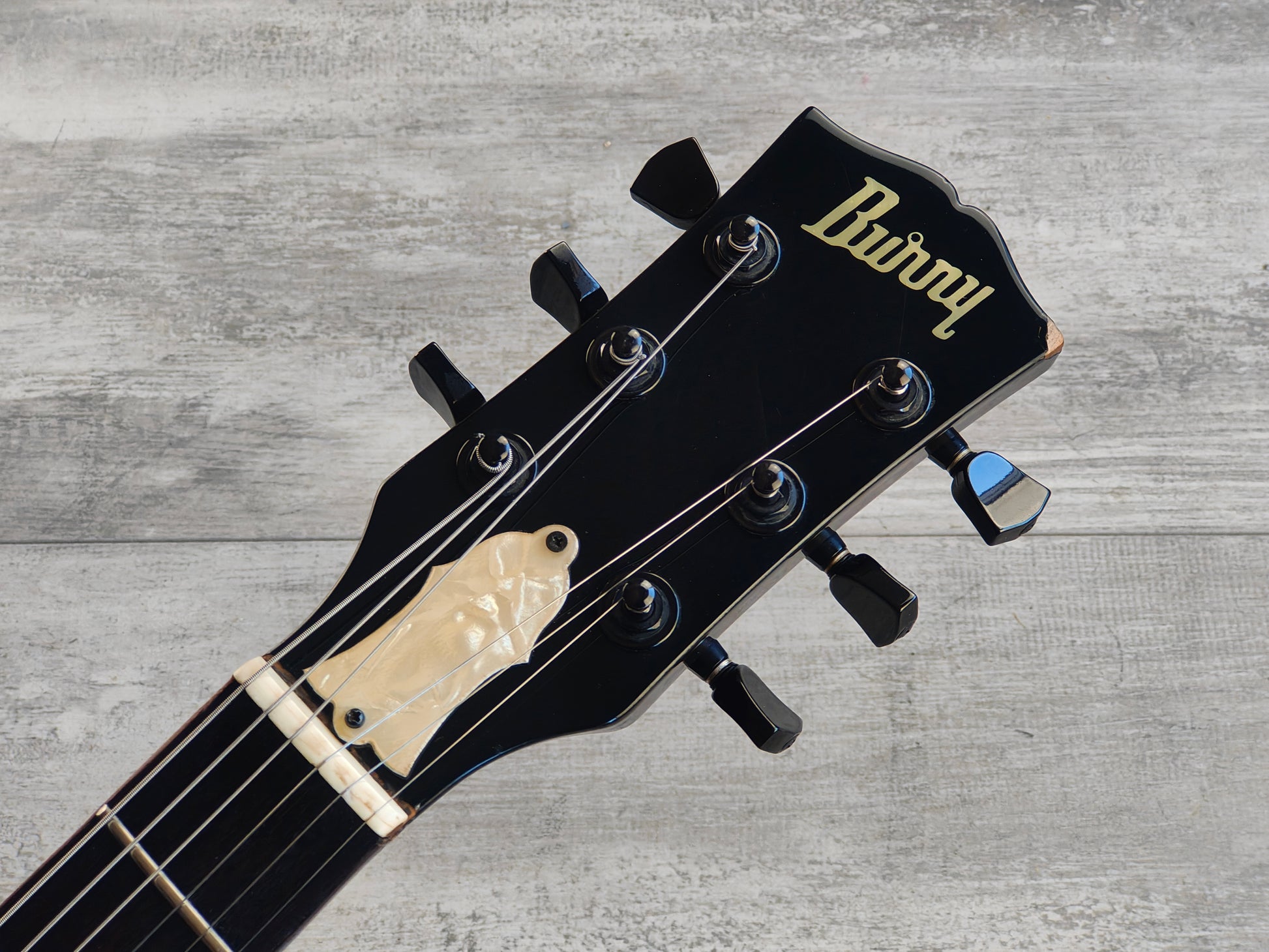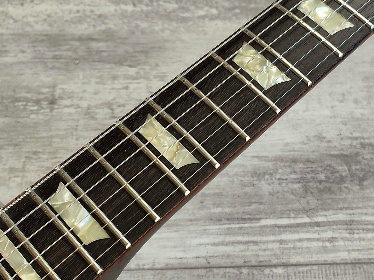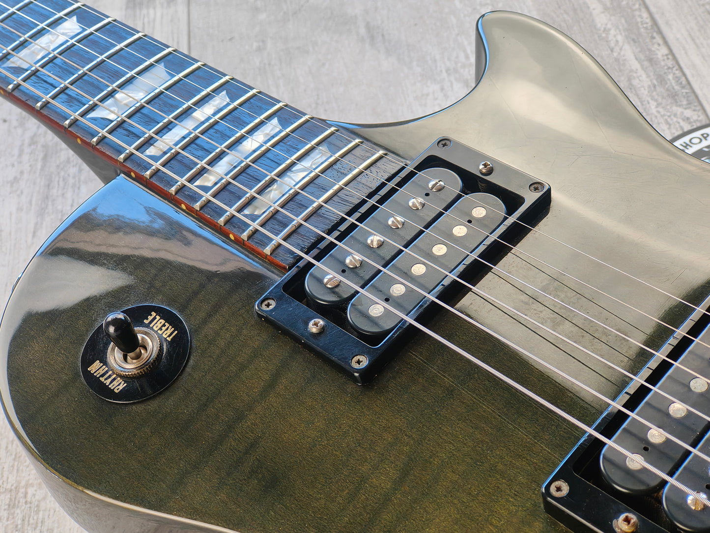 Made in Japan in 1995, the LG-75JP was Burny's "unofficial" Joe Perry signature model that was sold primarily to the domestic market (just after Aerosmiths 1994 tour of Japan). Transparent black maple top with a light flame aesthetic, mahogany back and neck, rosewood fingerboard, weighs 3.6kg's.