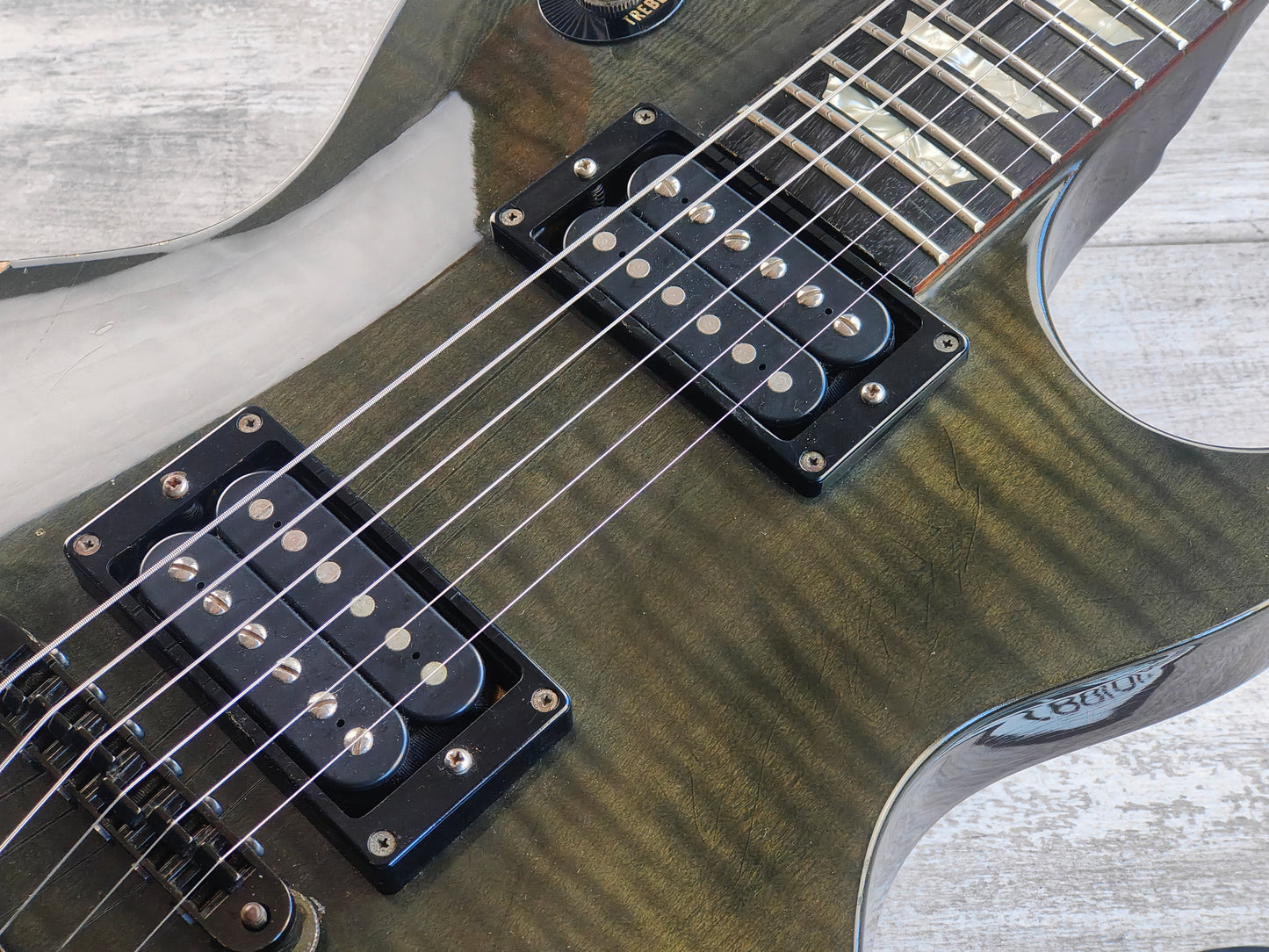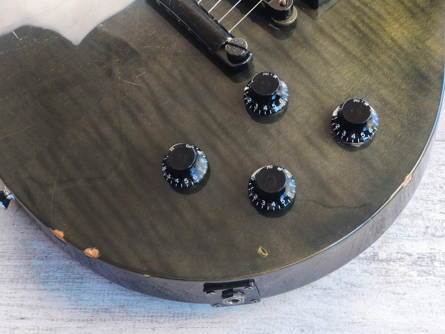 Loaded with a pair of Dimarzio ToneZone humbuckers with aged black hardware and Gotoh tuners, pearloid pickguard and truss cover really pop. Whether you're an Aerosmith fan or not, surely you can appreciate this thing as a nice Japanese Les Paul Studio style guitar!