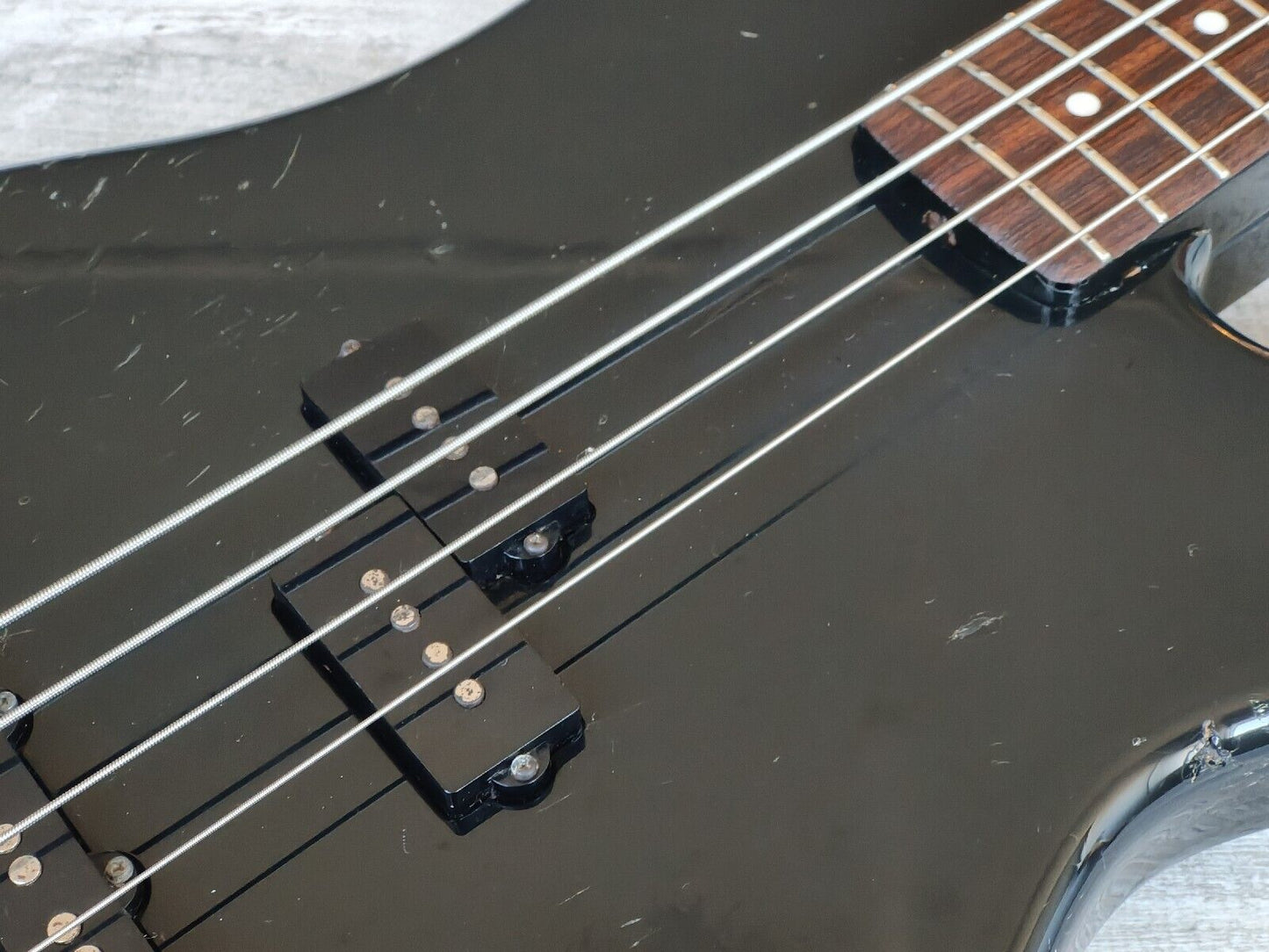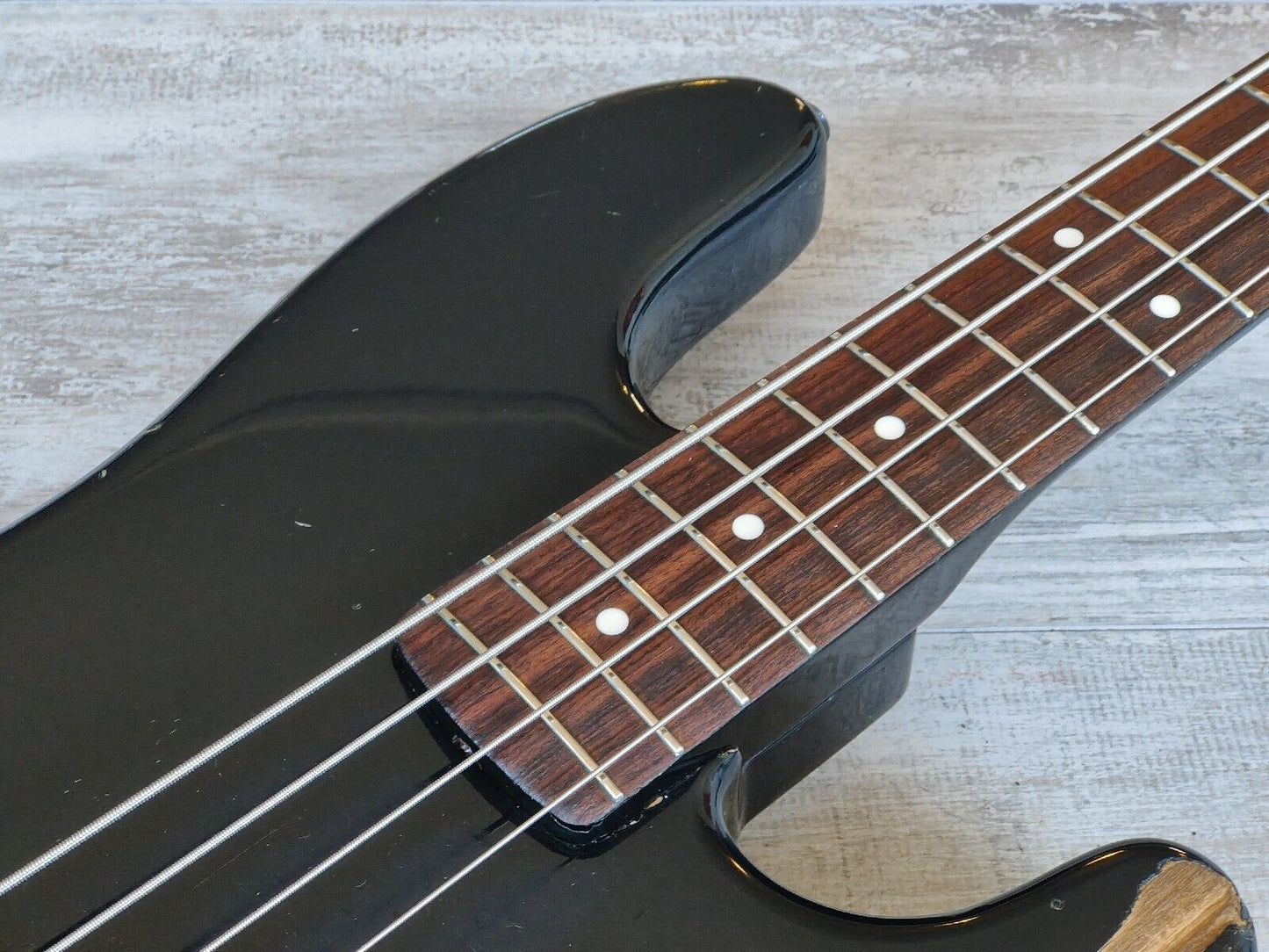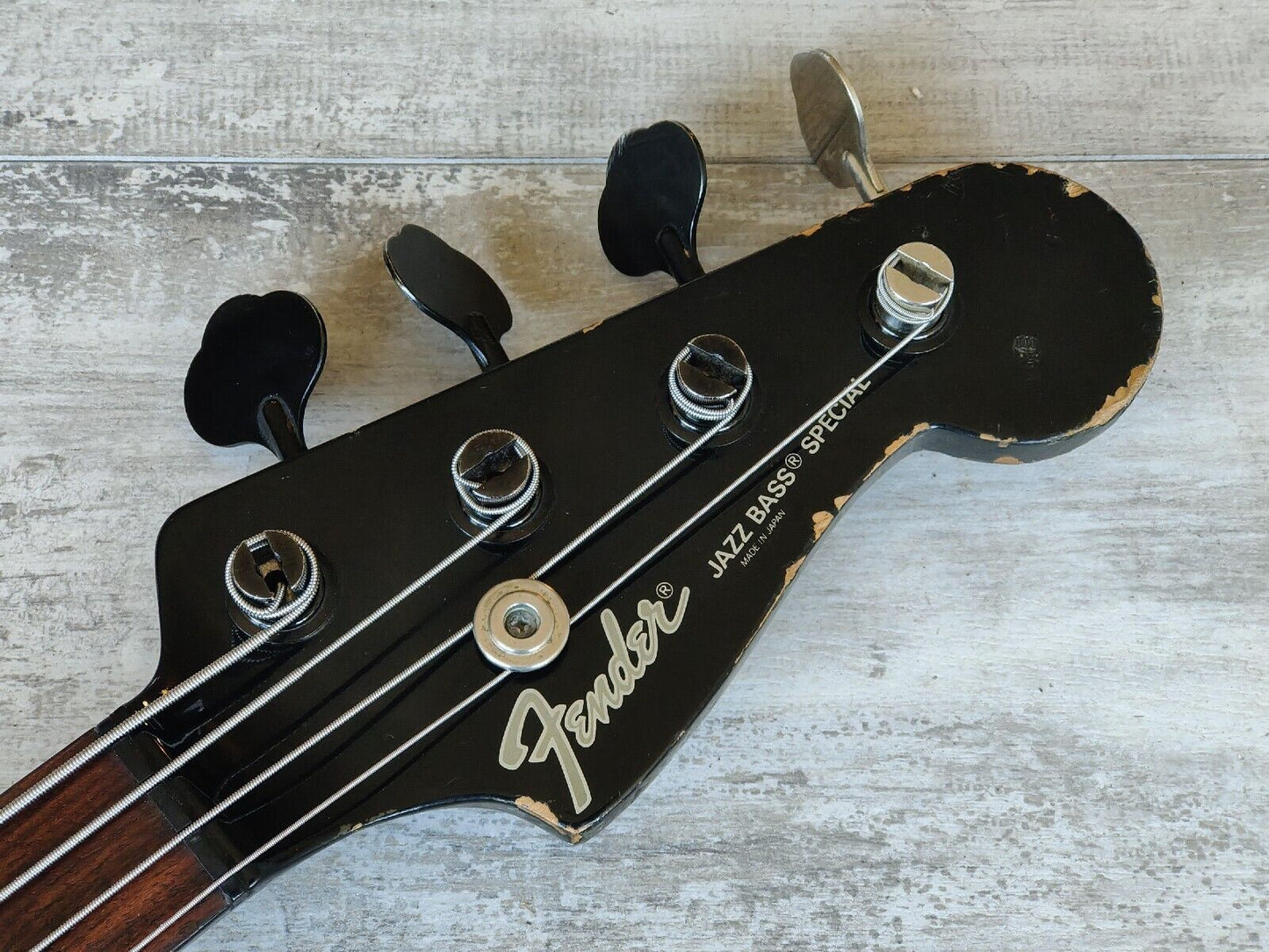 Made famous by Duff McKagan, the Fender Japan Jazz Bass Special was a hybrid that combined two of Fender's famous bass styles. Black painted ash body with a maple neck (nice wide 43mm nut width) and 22 fret rosewood fingerboard, it weighs 3.8kg's. Looks to be all original except for a new G tuner.