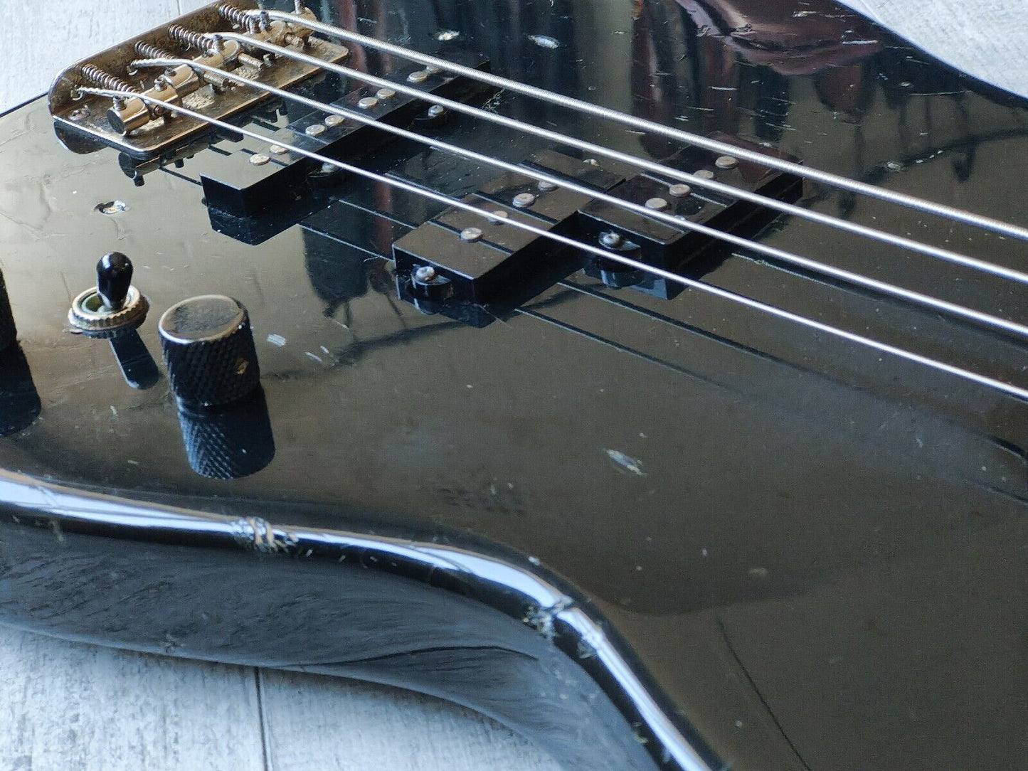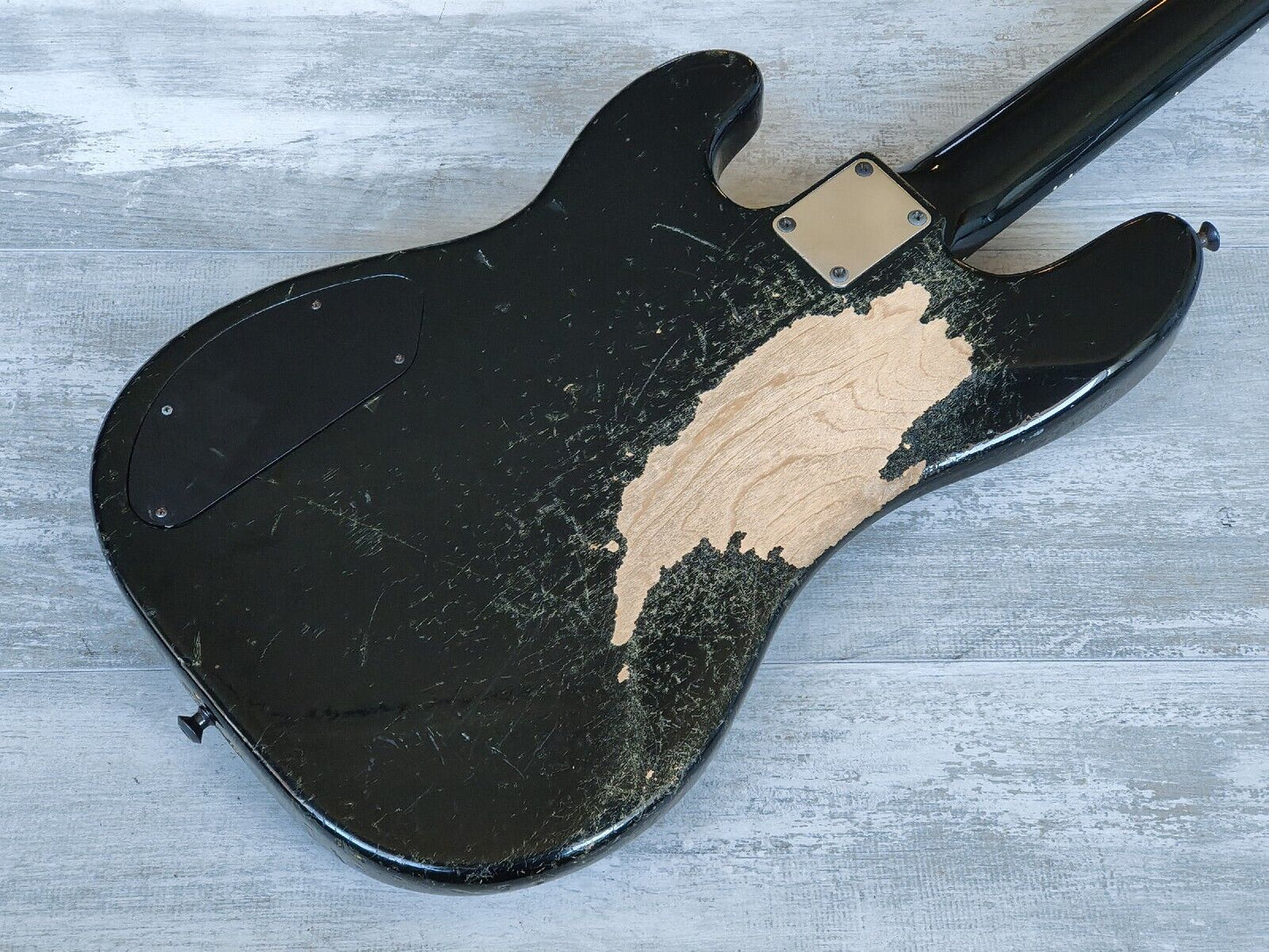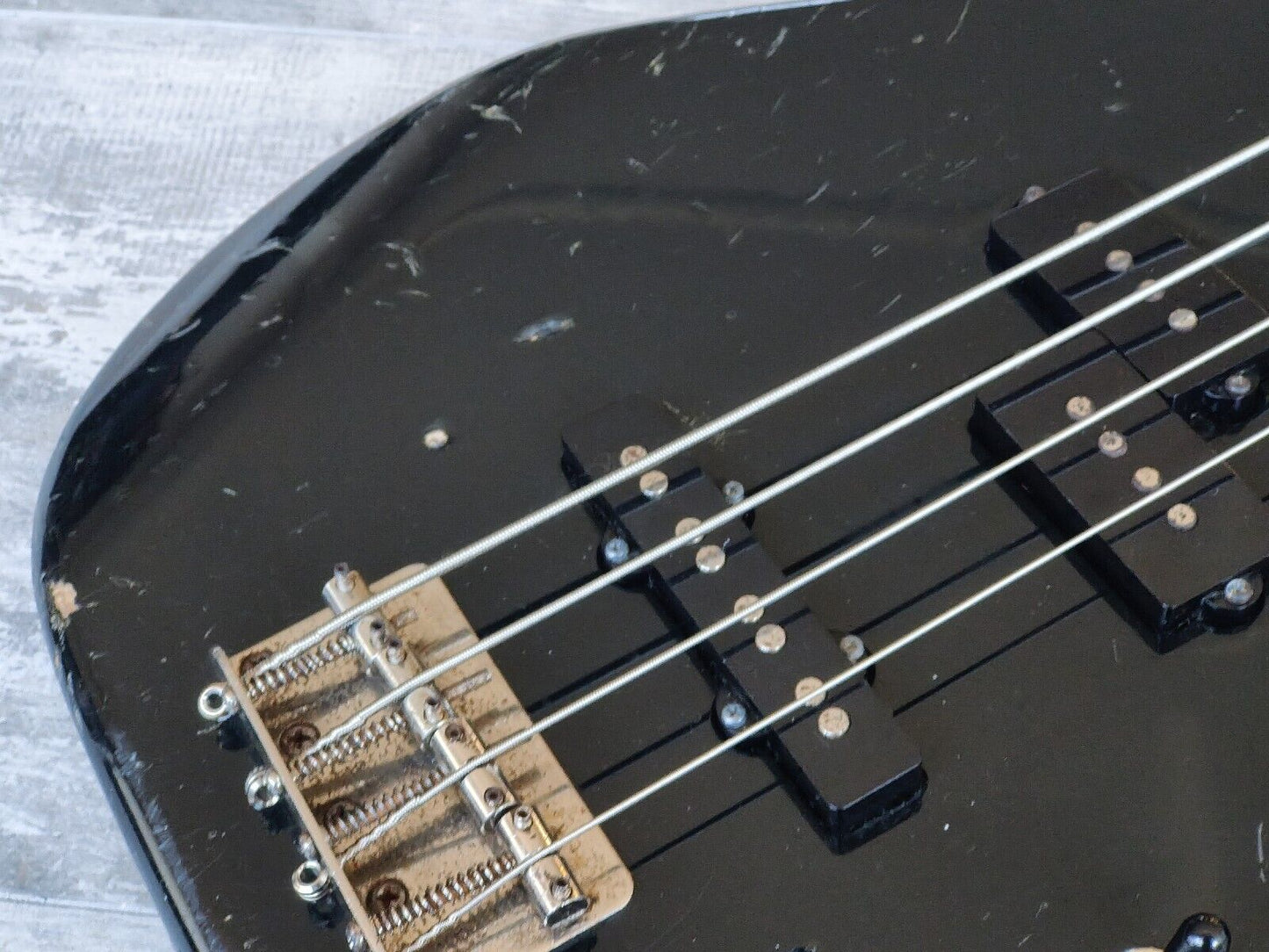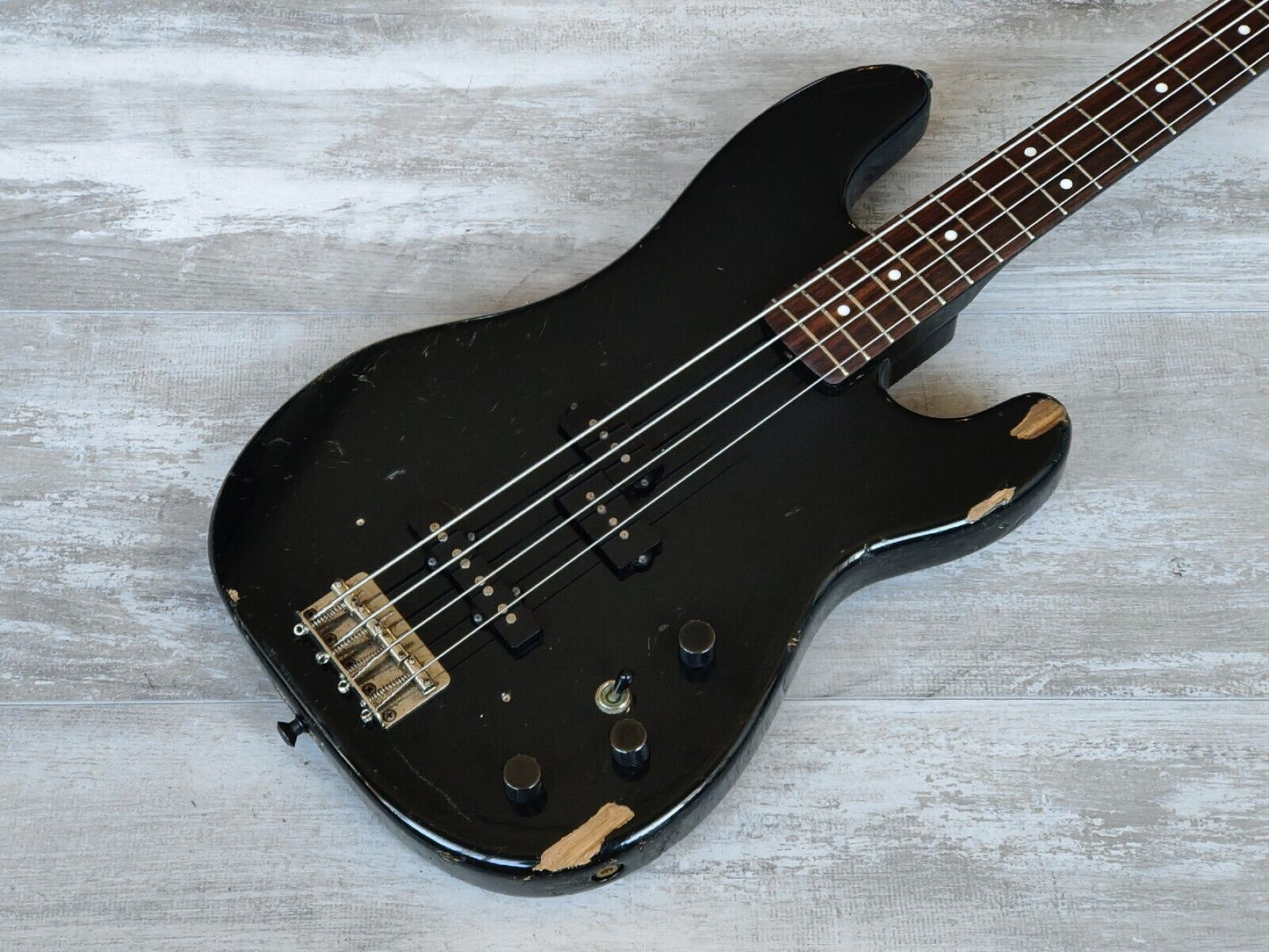 Made famous by Duff McKagan, the Fender Japan Jazz Bass Special was a hybrid that combined two of Fender's famous bass styles. Black painted ash body with a maple neck (nice wide 43mm nut width) and 22 fret rosewood fingerboard, it weighs 3.8kg's. Looks to be all original except for a new G tuner.