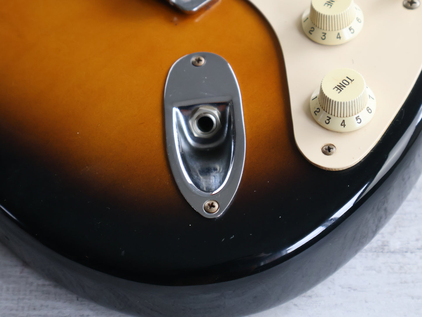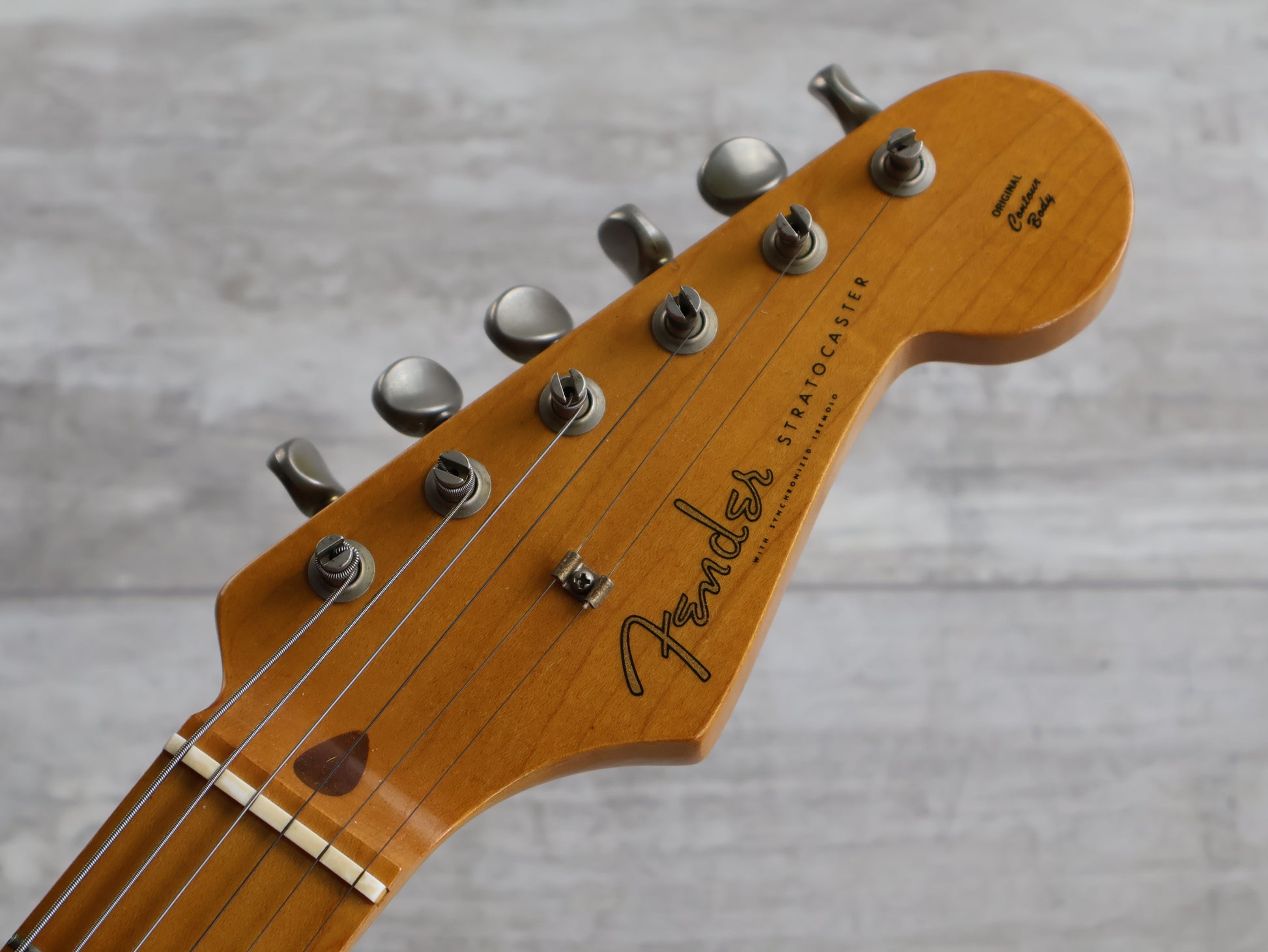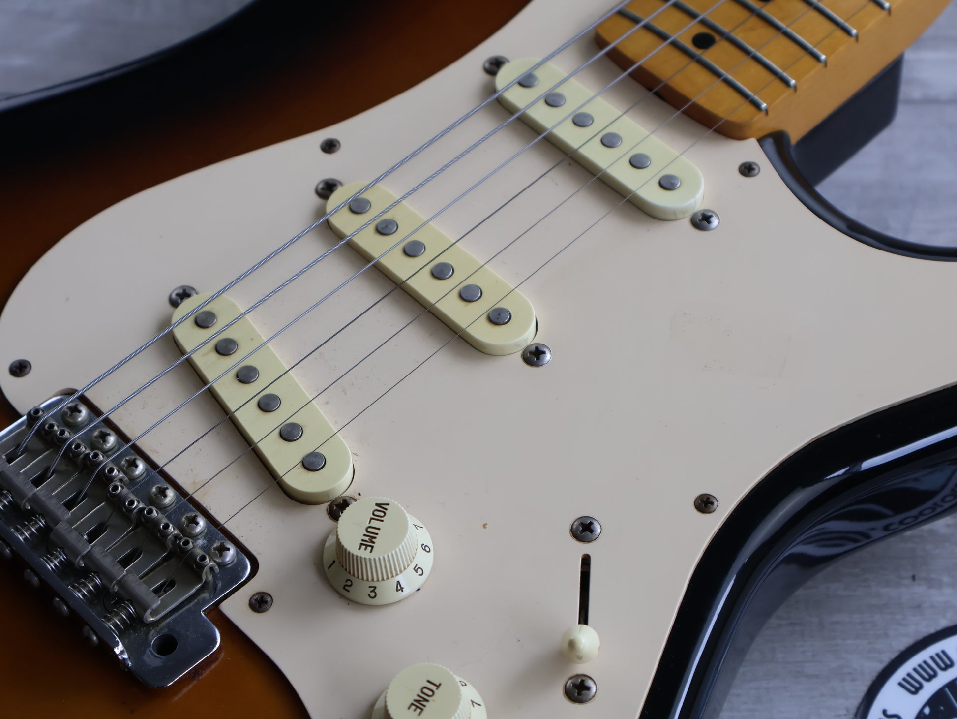 Made by the Fujigen factory in 1995, the ST57-53 was Fender Japan's entry level '57 reissue model. Basswood body wearing a timeless sunburst finish bolted to a 21 fret maple neck (7.25" radius), it weighs 3.2kg's.