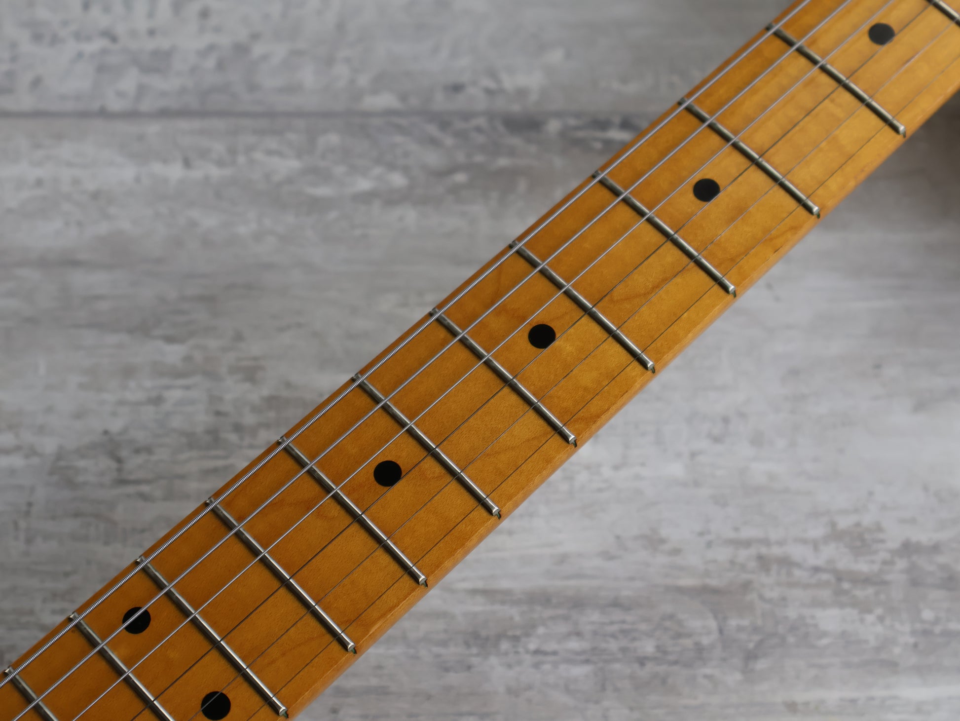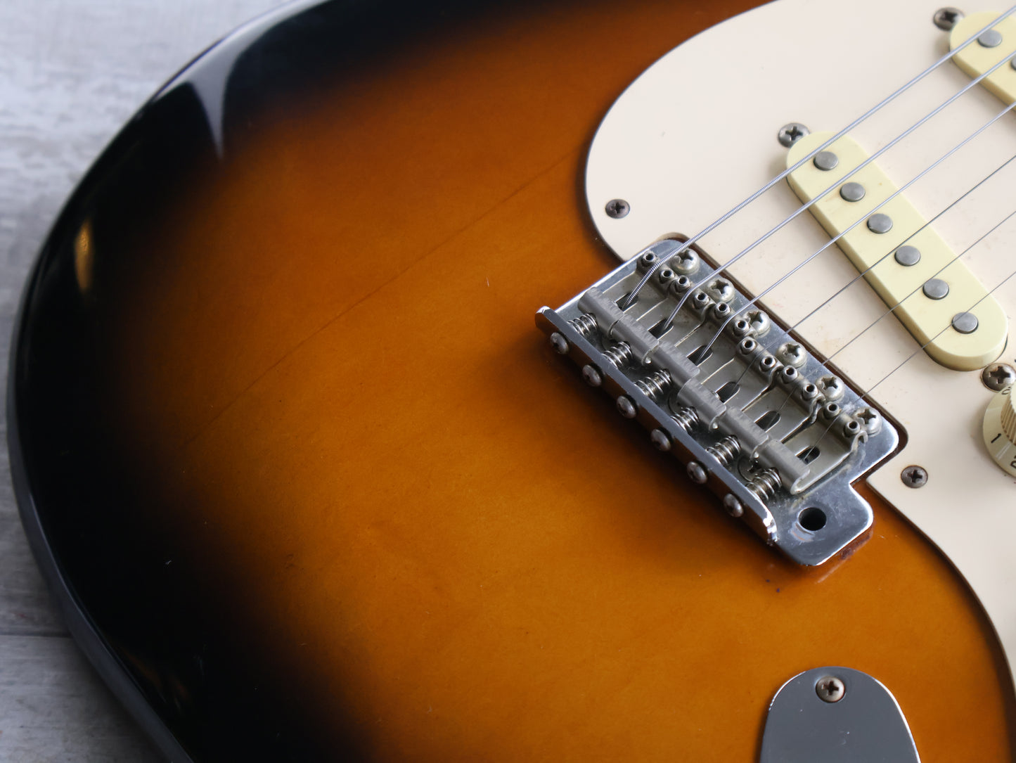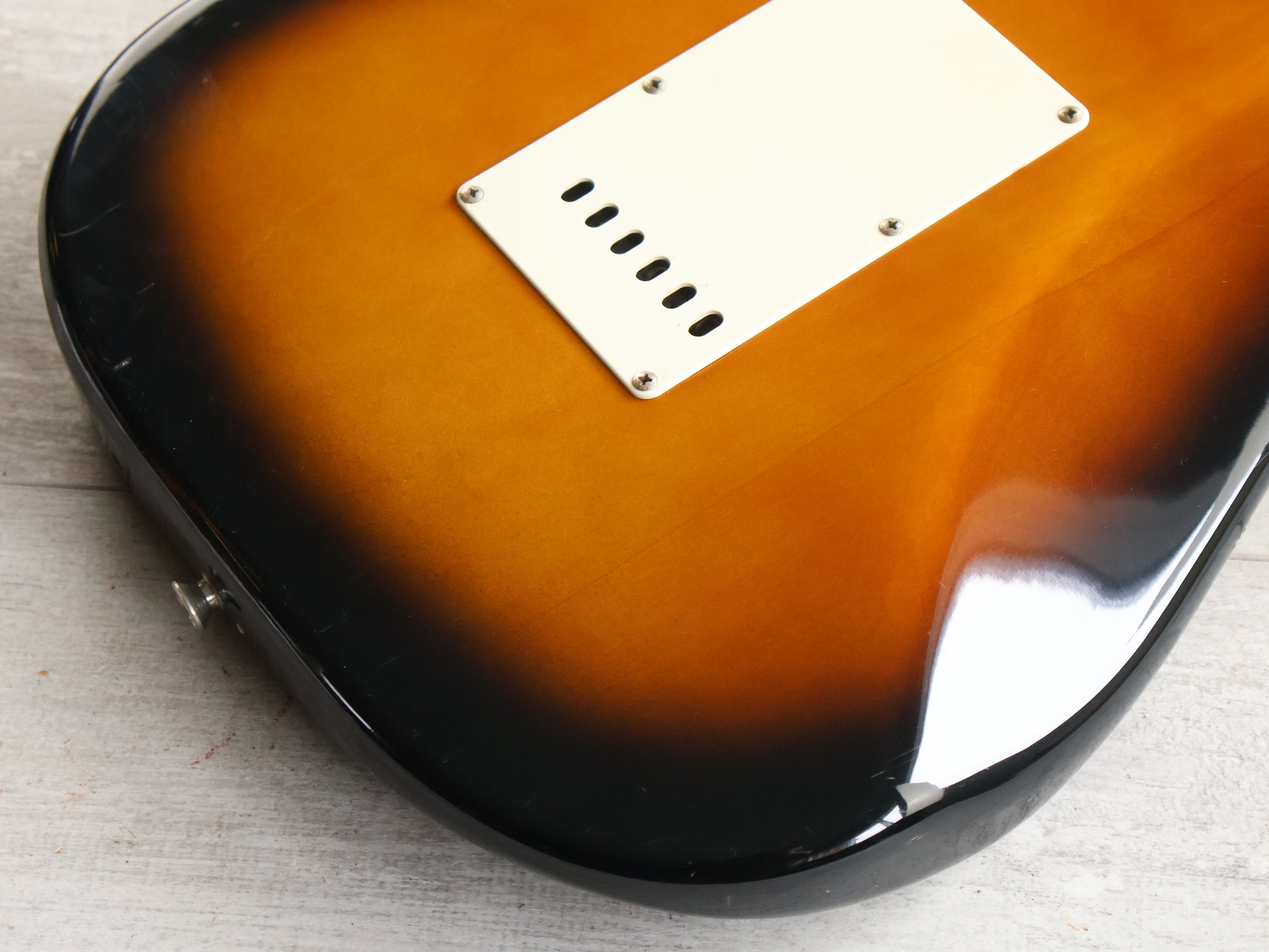 Made by the Fujigen factory in 1995, the ST57-53 was Fender Japan's entry level '57 reissue model. Basswood body wearing a timeless sunburst finish bolted to a 21 fret maple neck (7.25" radius), it weighs 3.2kg's.