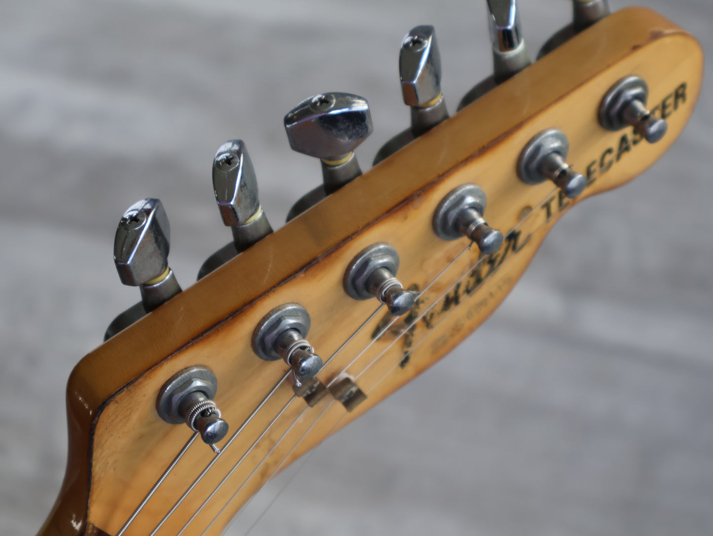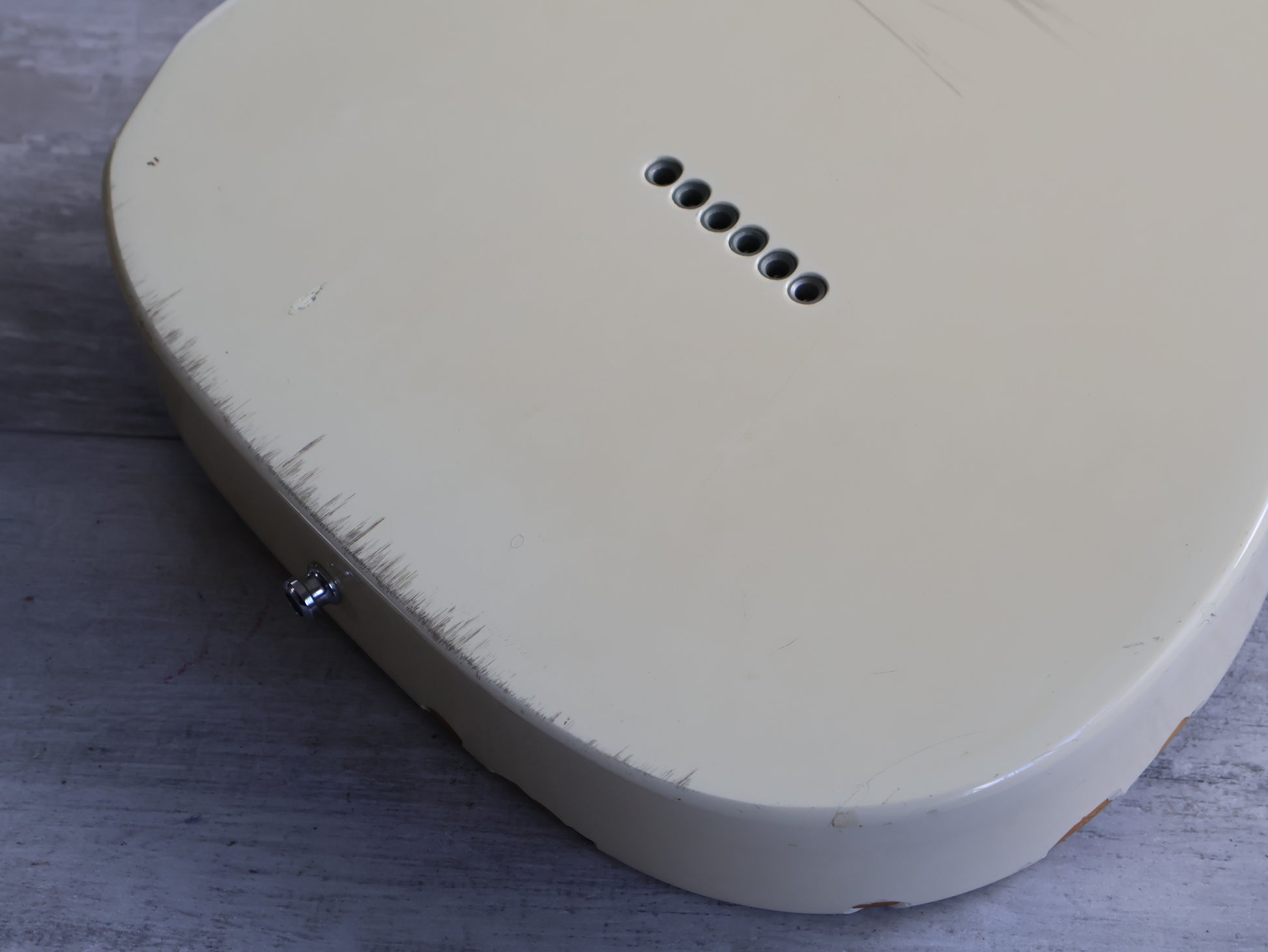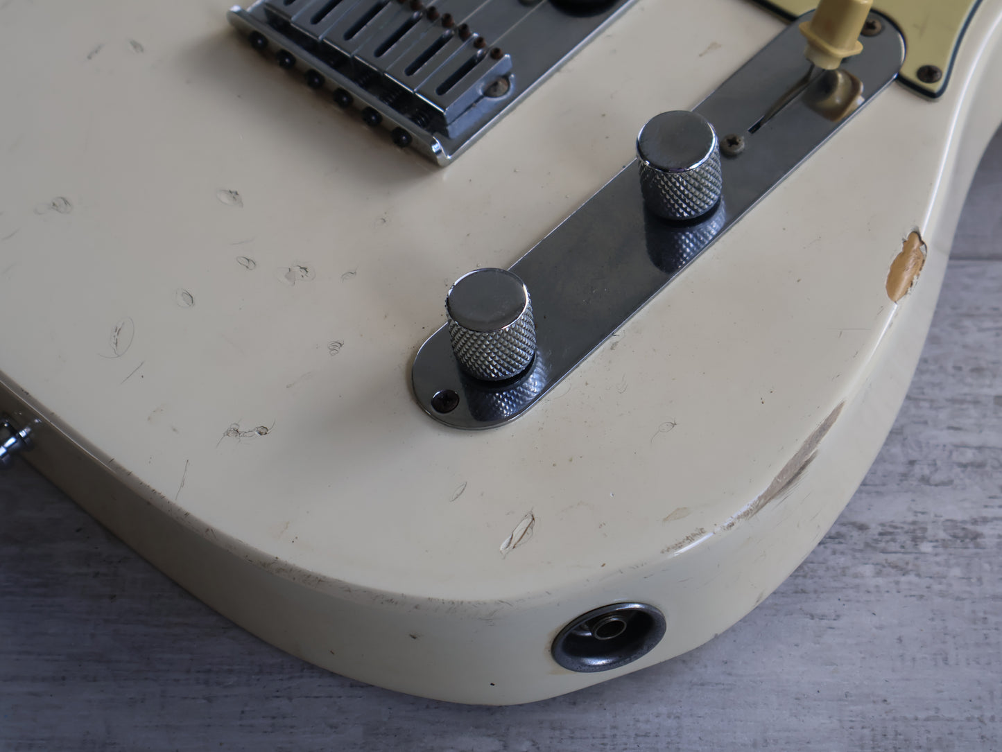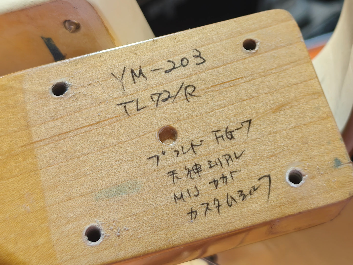Made by the Fujigen factory in 1995, this TL72 was a custom order version of the regular '72 model Telecaster (rather than the more famous Thinline or Custom models from that era). This one wears a well aged "Olympic White" finish on a basswood body bolted to an oval profile maple neck and rosewood fingerboard (7.25" radius, 21 frets), it weighs 3.7kg's.