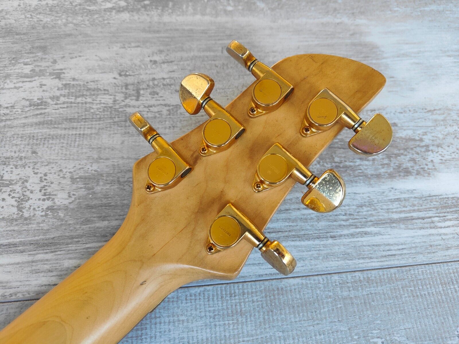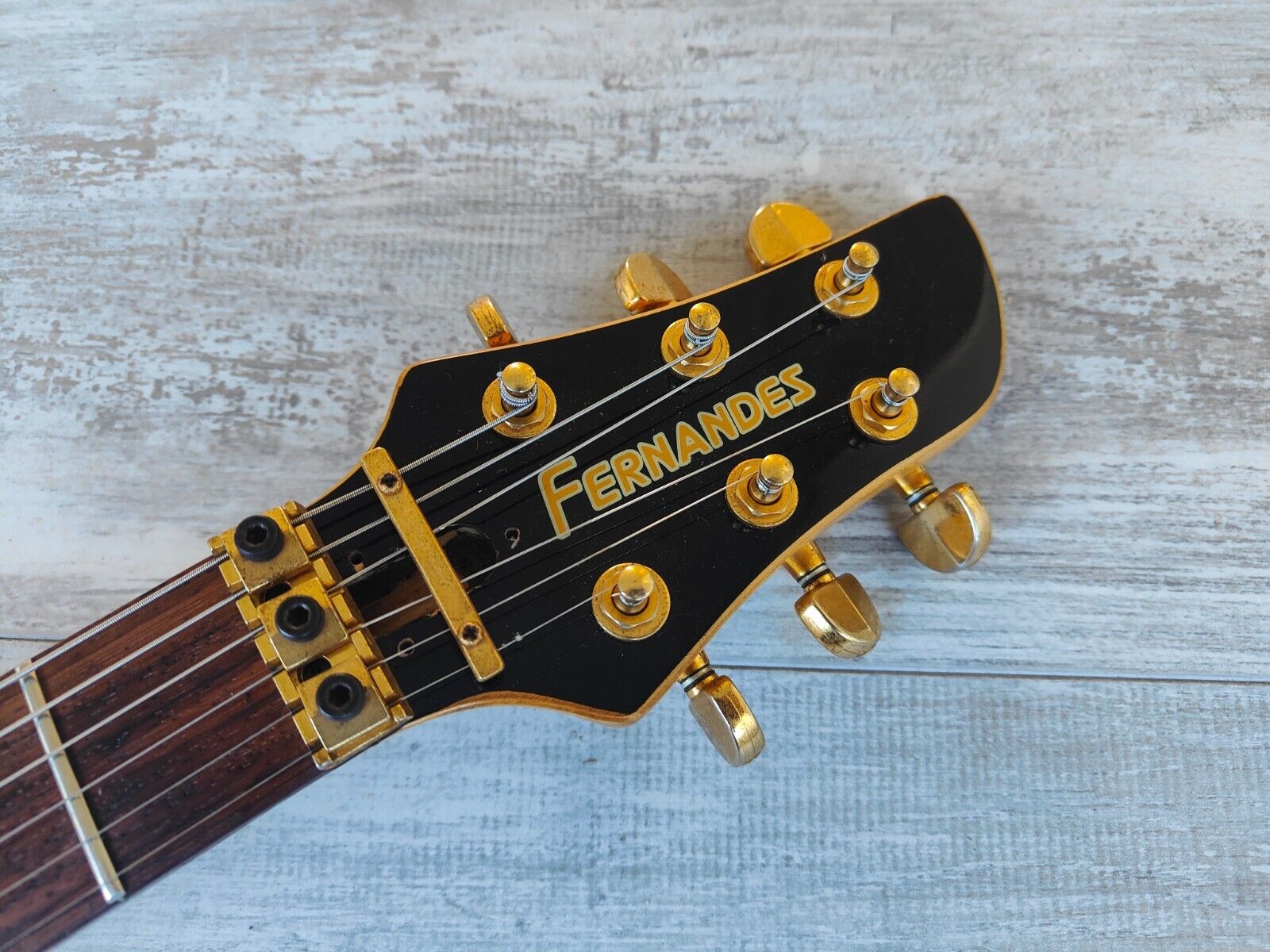 Made in Japan in 1995, the APG-85S was listed in the "USA Series" catalog from Fernandes. Mahogany body with a bolt on maple neck and 24 fret rosewood fingerboard (628mm scale length), weighs 3.6kg's. Loaded with Fernandes CD-100F, VS-200 and VH-401 pickups controlled by a 5-way blade switch and sustainer control toggles.