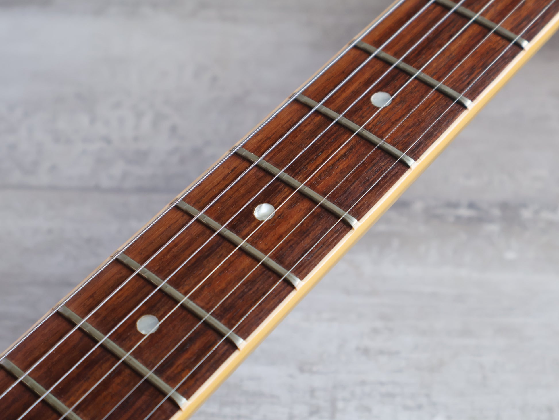 Weighing 3.8kg's, it's in clean condition with light wear from general use and appears all original except for a new set of Gotoh tuners. The slim 60's style neck is comfortable in the hand, the frets are shiny and smooth and the truss works perfectly.