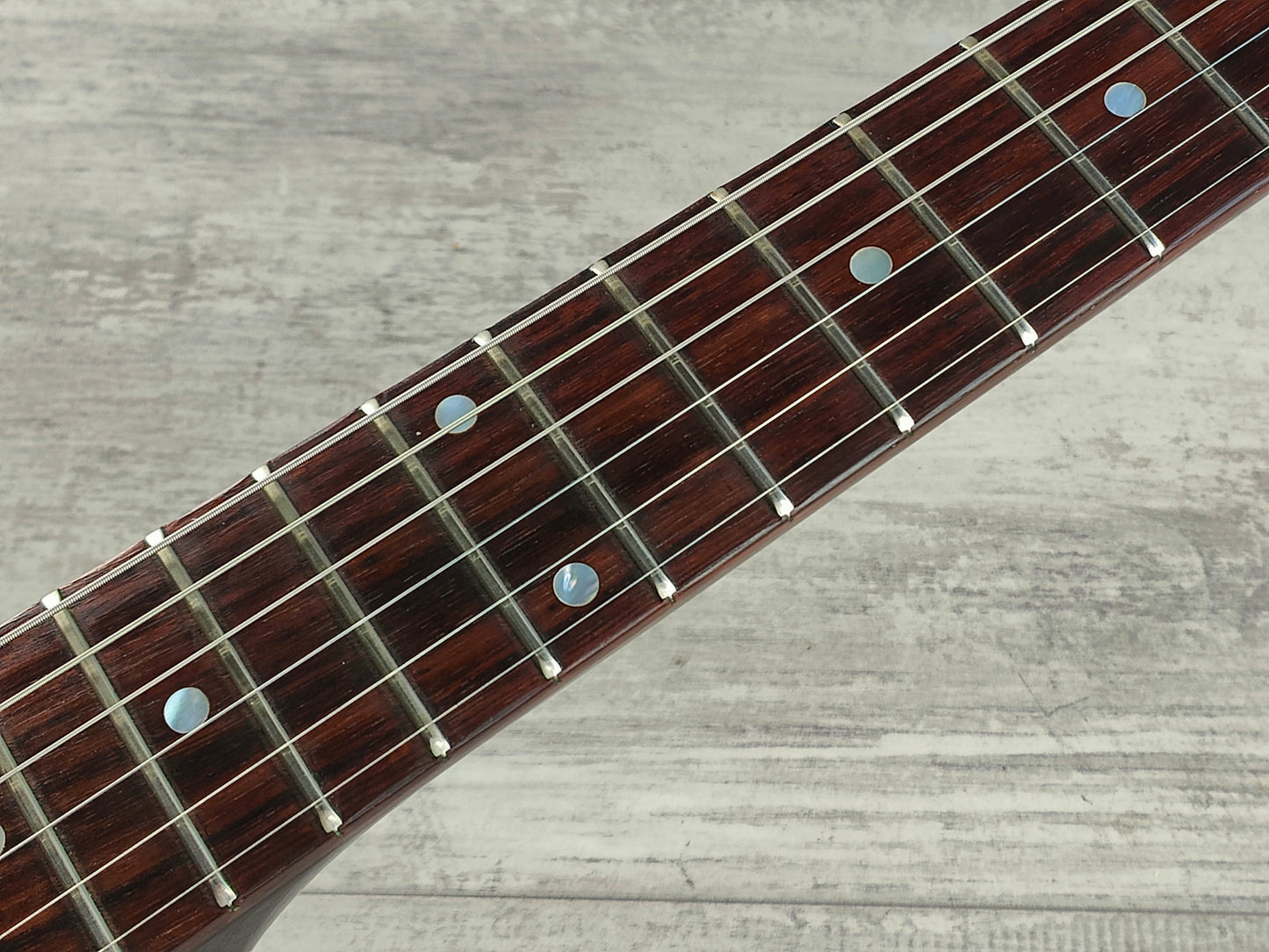 Love it or hate it, the Nighthawk is loaded with a great mix of tone and versatility. Loaded with an M-Series Mini-Humbucker/NSX Single Coil/Humbucker pickup configuration controlled by a 5-way selector. American made in 1995, it features an ebony finish with a mahogany body, 22 fret unbound rosewood fingerboard, slim 40mm nut width and weighs 3.2kg's.
