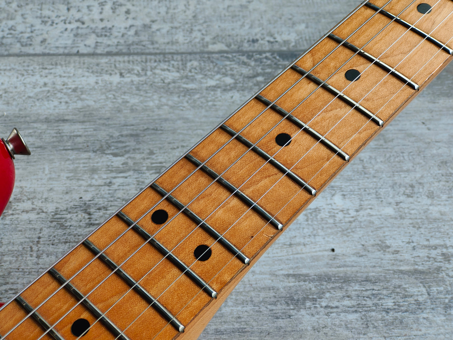Made in Mexico in 1996, the Fender Duo-Sonic was a reissue of the compact "student" model that surged in popularity as a shoegazers dream. Poplar body with a bolt on maple neck with a 20 fret maple fingerboard (22.7" scale length), it weighs 3kgs.