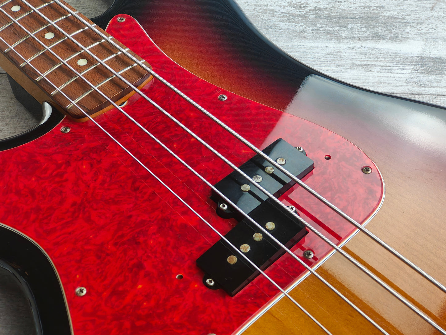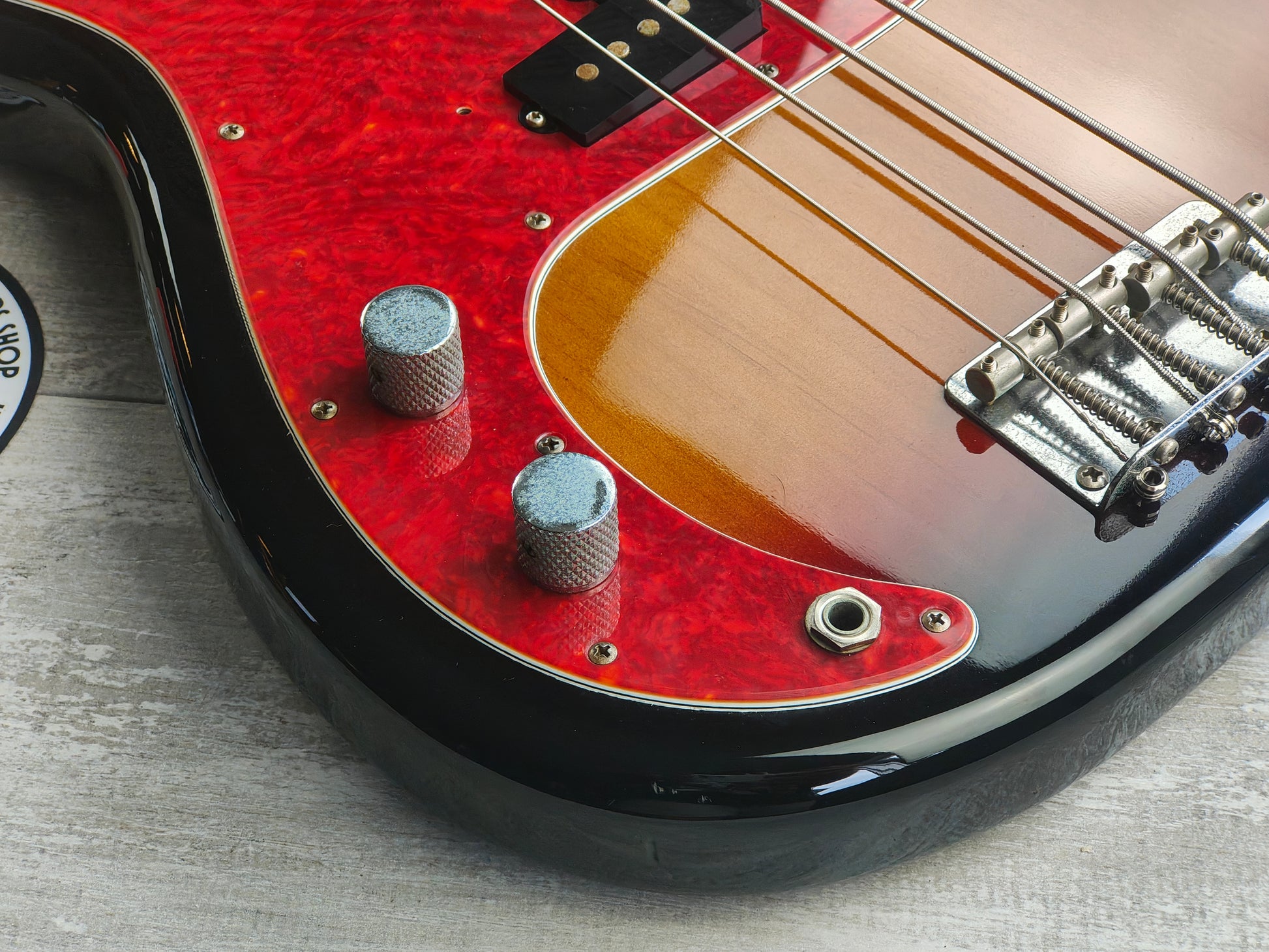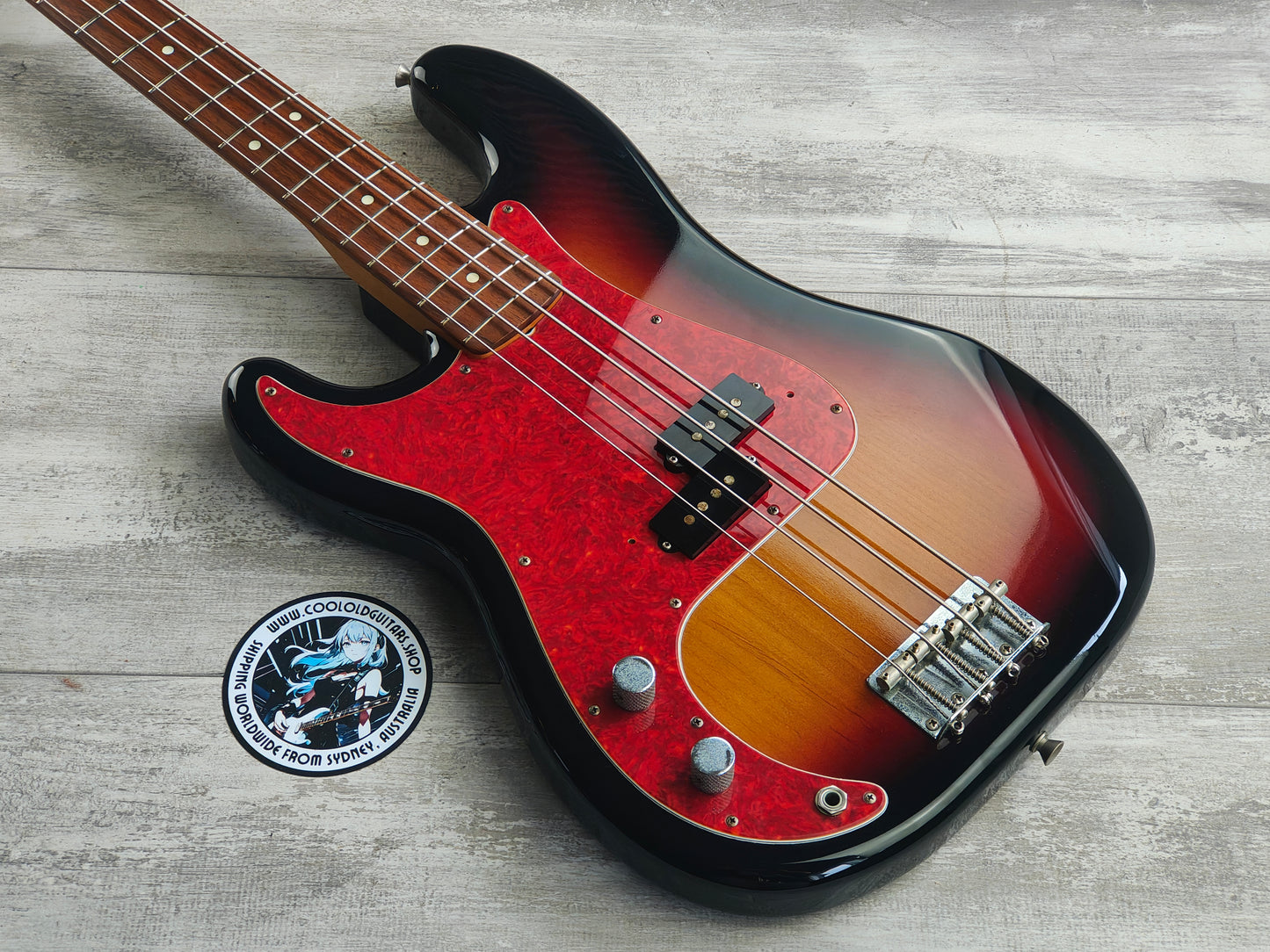 Japanese made in 1996, this is Fender's Left Handed variant of the '62 Reissue Precision Bass. Basswood body with a three-tone sunburst finish bolted to a maple neck with a rosewood fingerboard (43mm nut width), weighs 4kg's. Loaded with a Fender Japan single coil P pickup that sounds great, it seems to be all original as pictured.