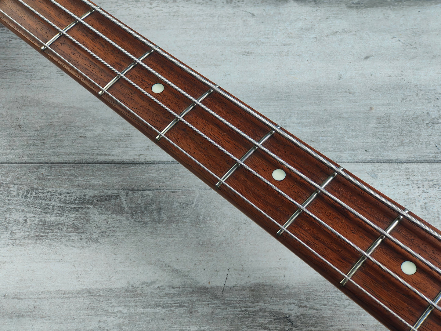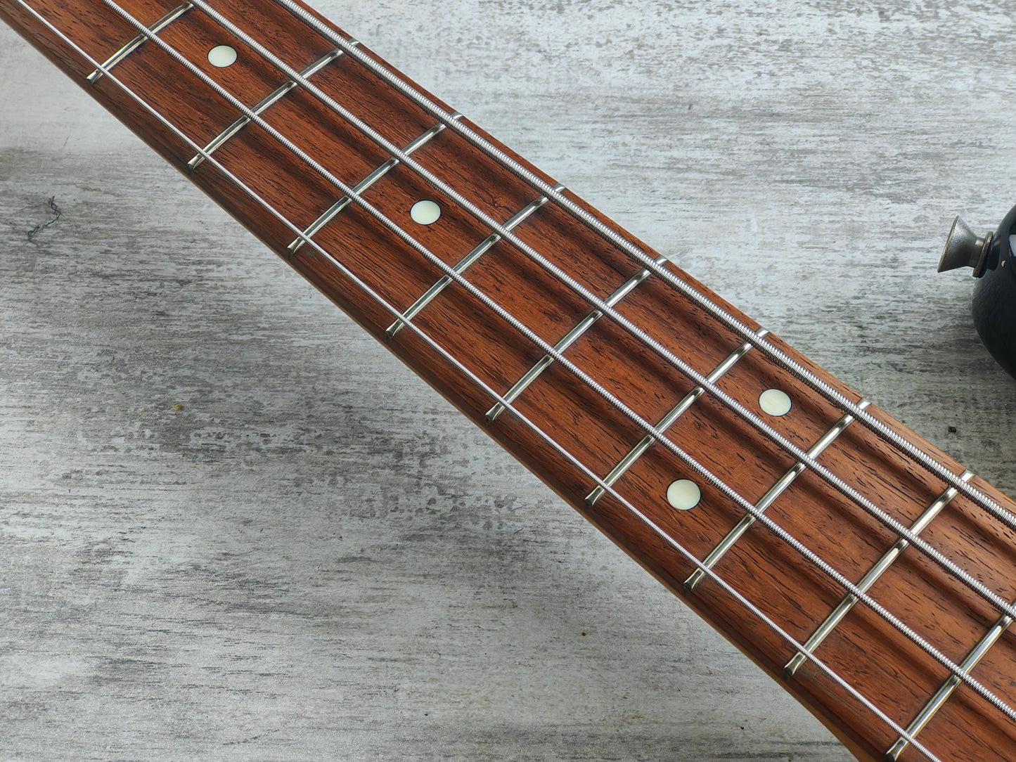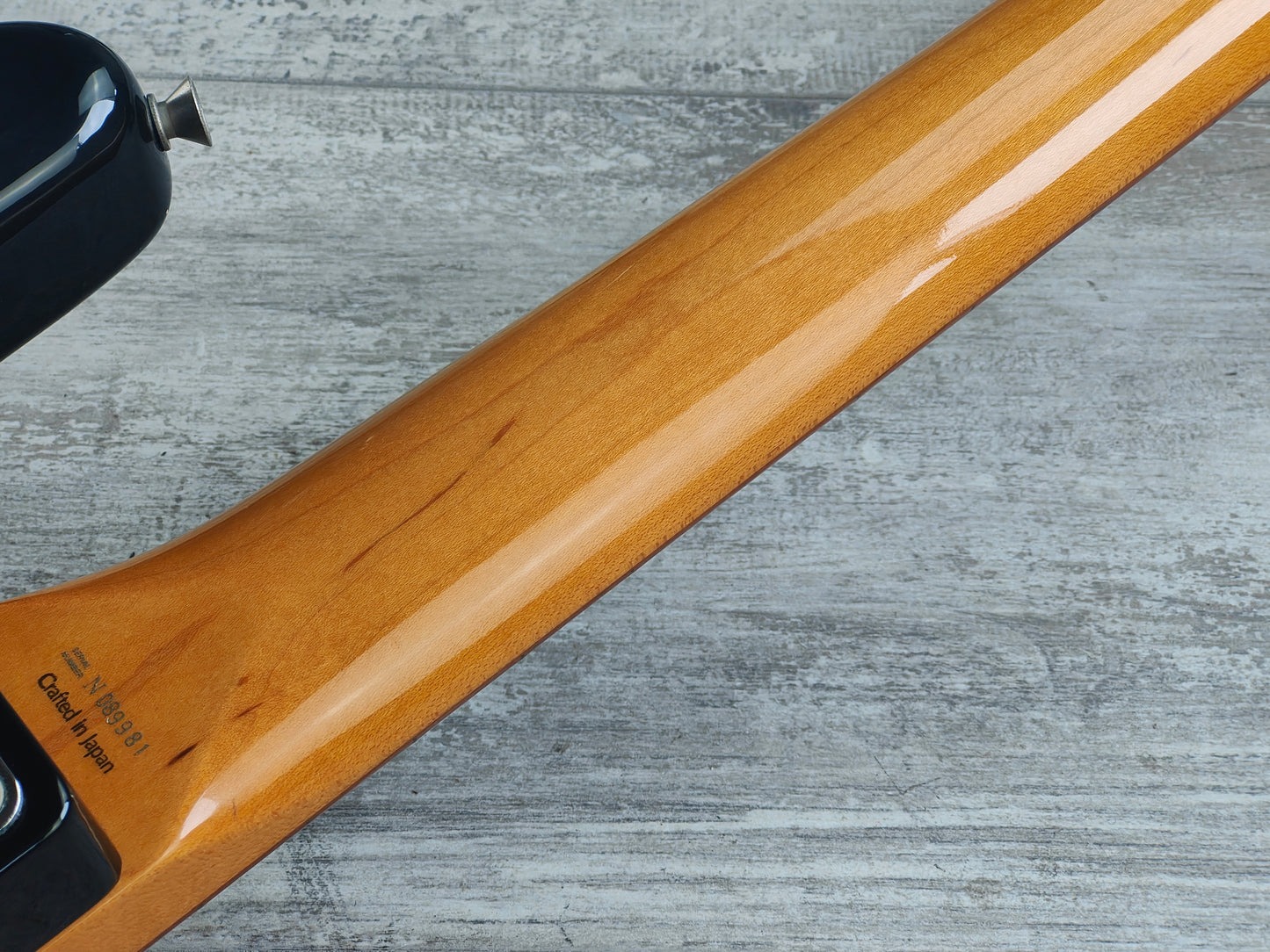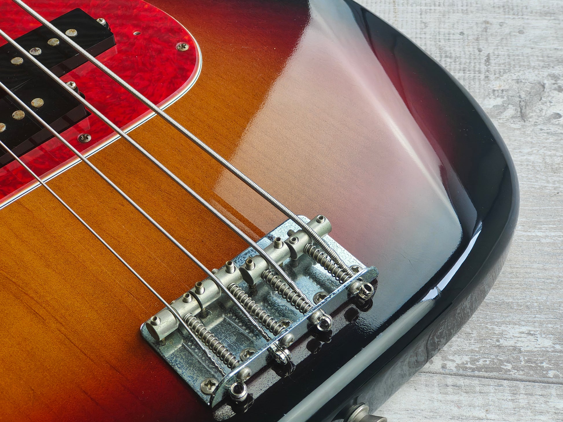 Japanese made in 1996, this is Fender's Left Handed variant of the '62 Reissue Precision Bass. Basswood body with a three-tone sunburst finish bolted to a maple neck with a rosewood fingerboard (43mm nut width), weighs 4kg's. Loaded with a Fender Japan single coil P pickup that sounds great, it seems to be all original as pictured.