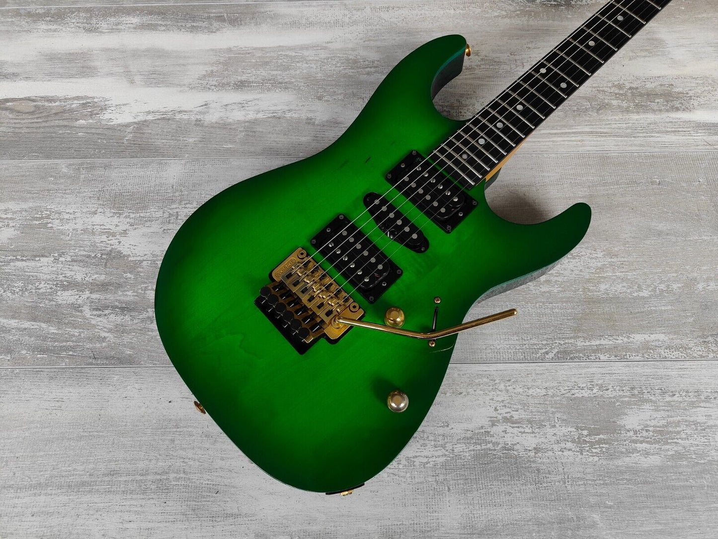 1996 Greco Japan GP-900DT HSH Superstrat w/Floyd Rose (Kermit Green Refinish)