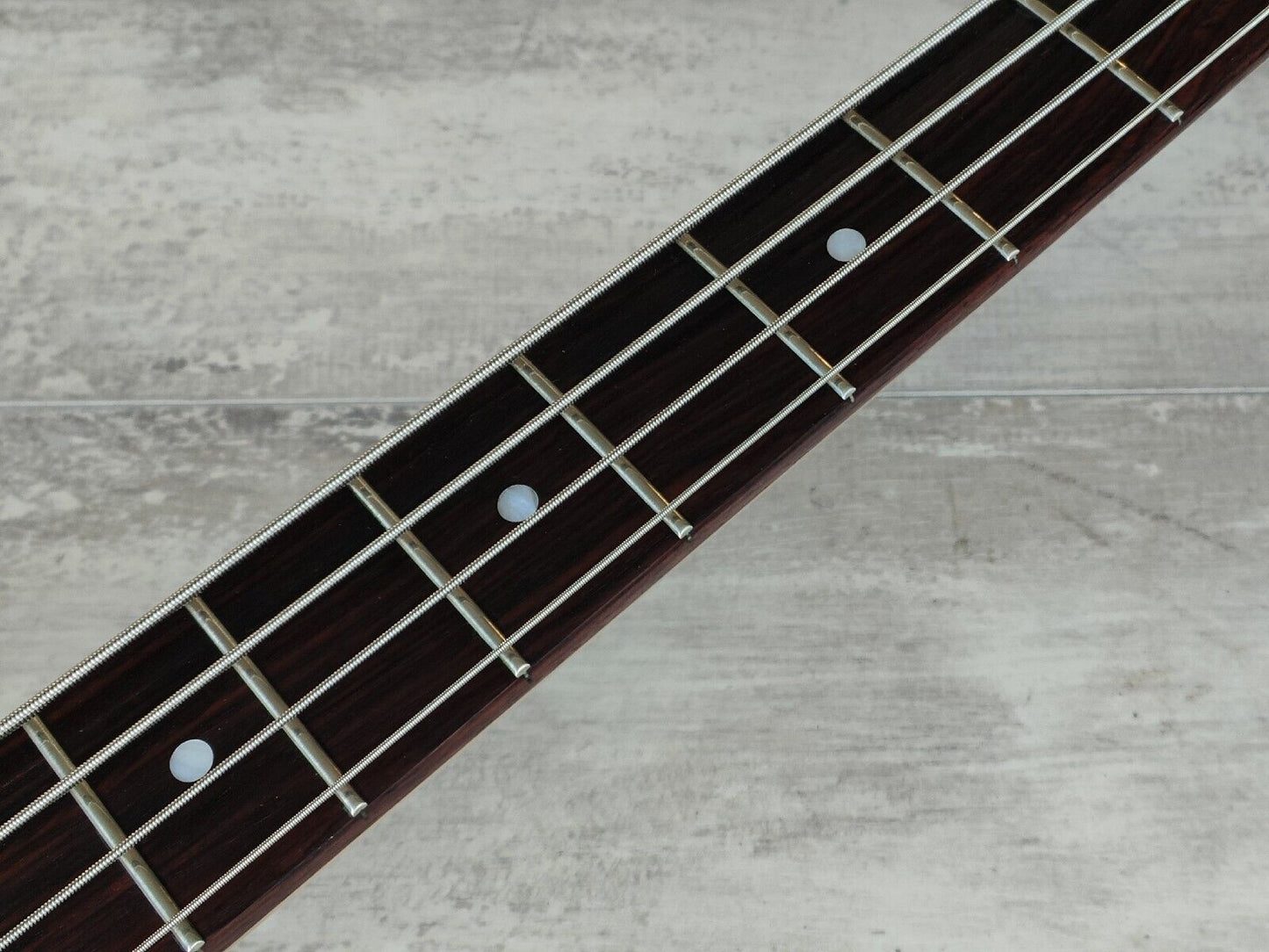 Made in the Fujigen factory in the late 1990's, the PXB-M400 was Greco's medium scale Phoenix offering. These were built with a basswood body, maple neck, 24 fret rosewood fingerboard (32" scale length and a 38mm nut) and weigh 3.3kg's. Loaded with Greco passive PJ pickups and controlled by two volume controls and a tone knob.