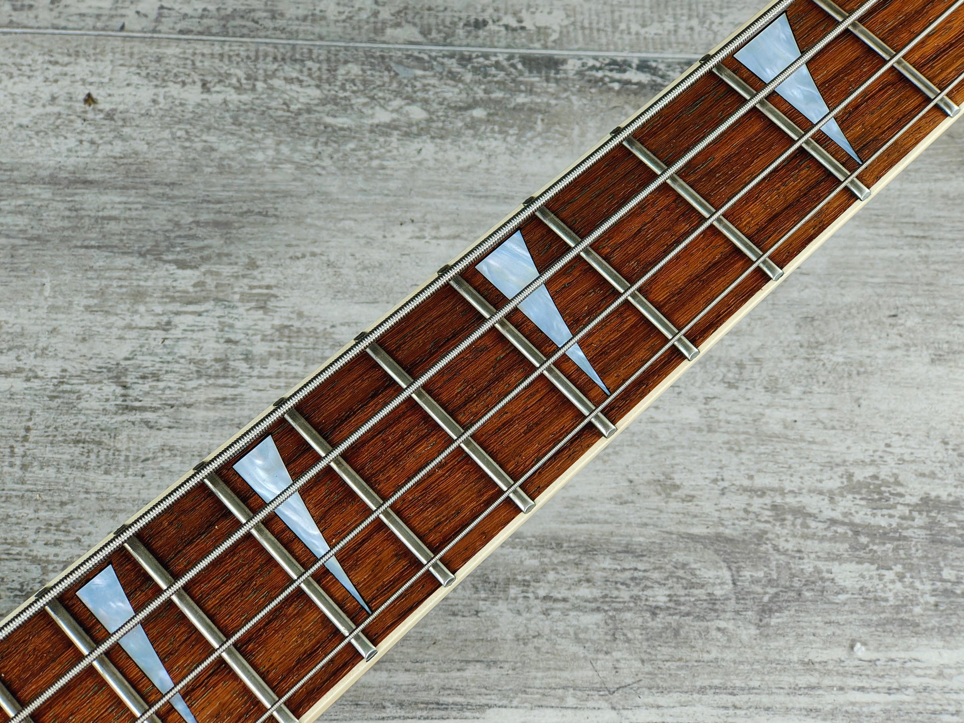 Good used condition as pictured with a few small cosmetic bumps and dings. The frets have plenty of life, smooth and shiny with some light wear. Given a basic restring and service prior to listing, it's got a replacement back plate and a reglued section of the lower horn.