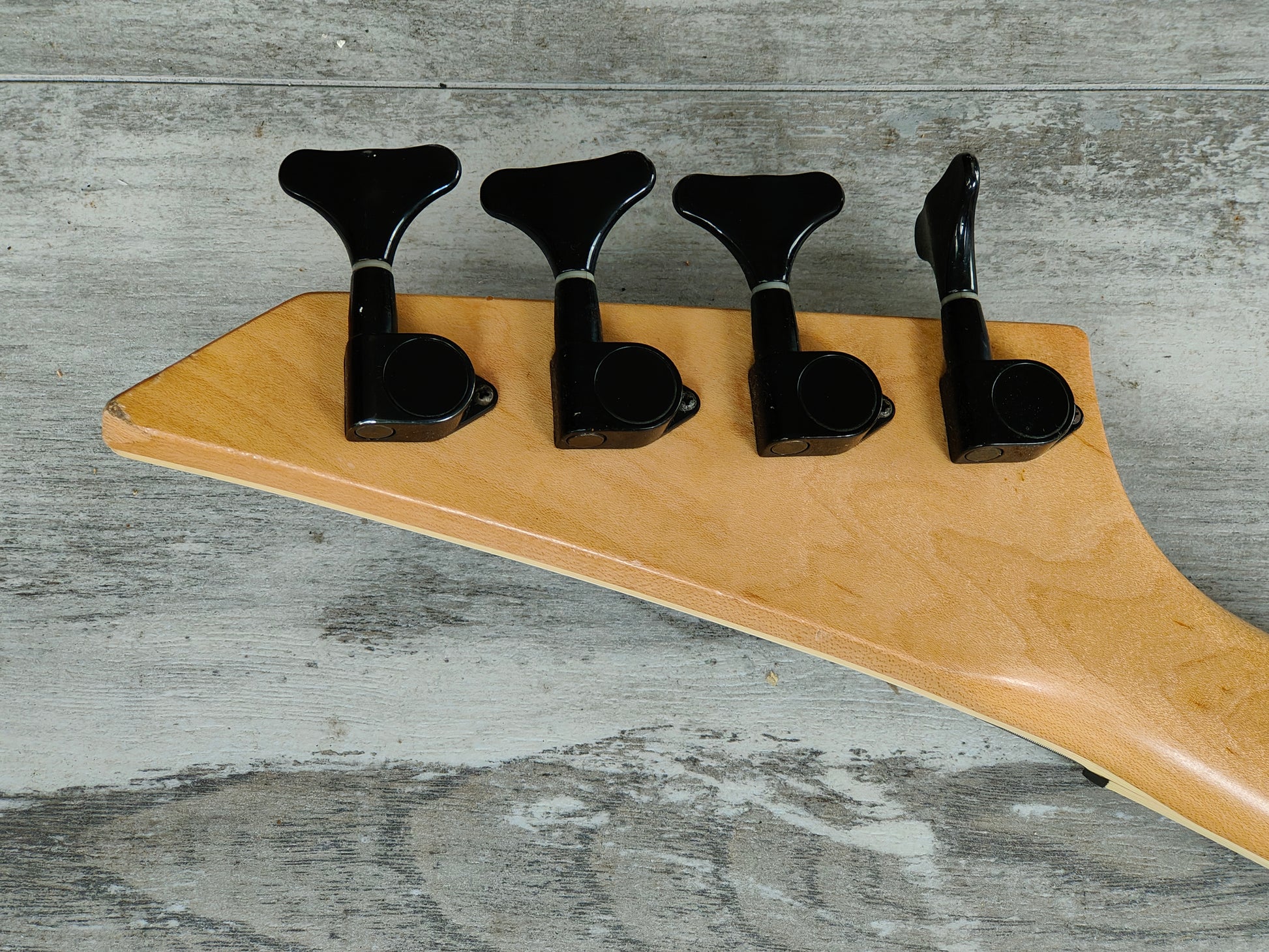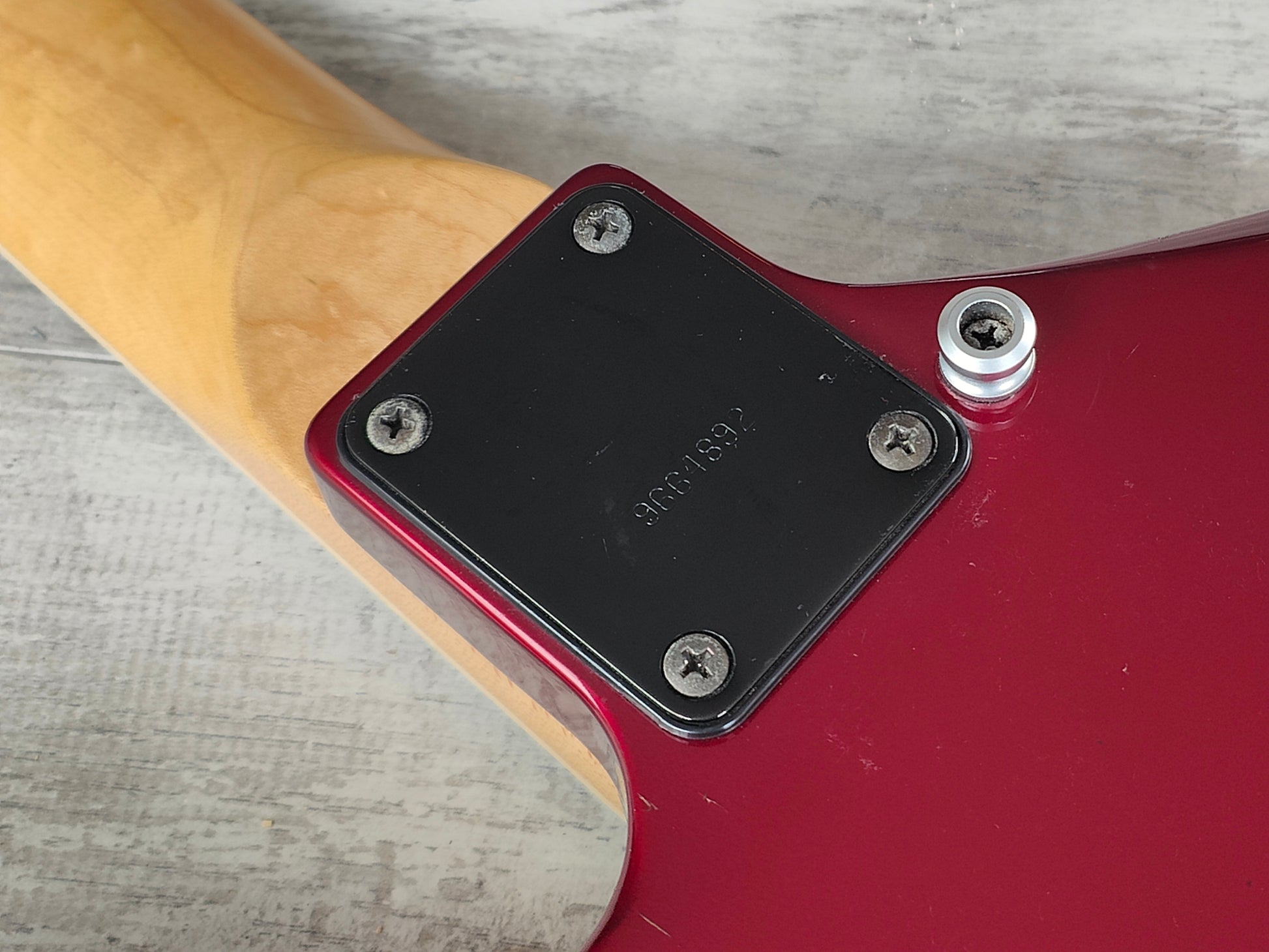 Made in Japan by Jackson in 1996, this is a very rare Japanese market "Kelly Star" bass model sold only to the Japanese market. Looks to be a poplar body with a Candy Apple Red finish bolted to a rock maple neck, 24 fret bound rosewood fingerboard (34" scale length), it weighs just over 3.4kg's. Loaded with a pair of active Jackson branded pickups controlled by independent volume controls and a master tone along with a killswitch mini toggle.