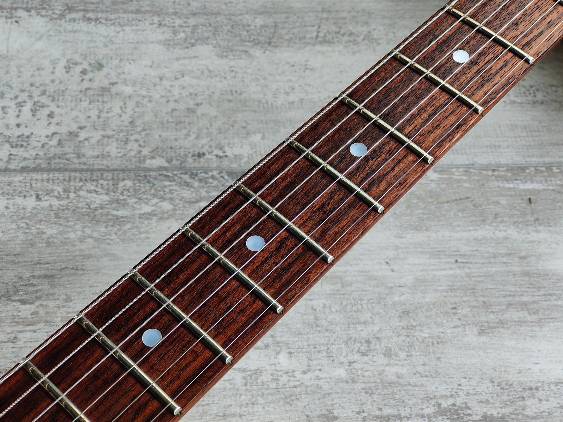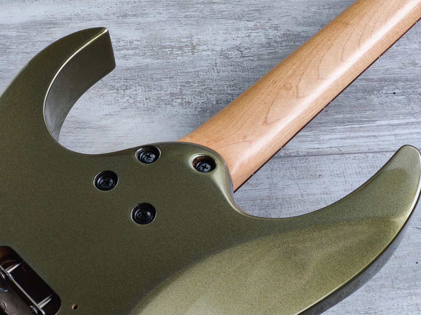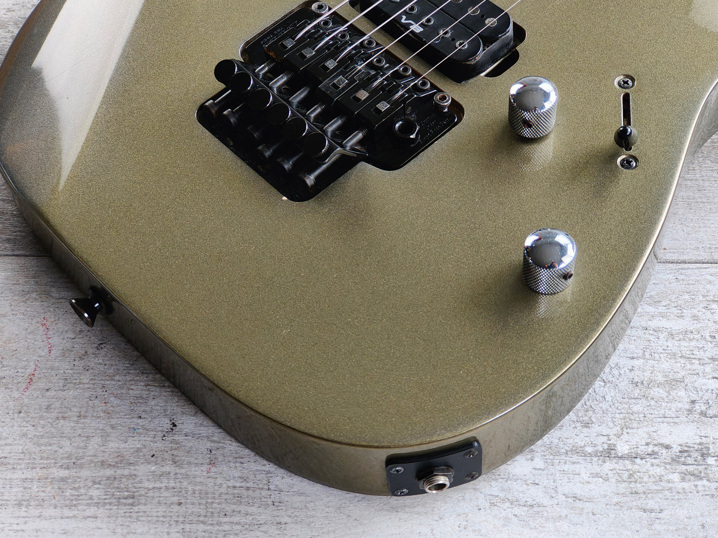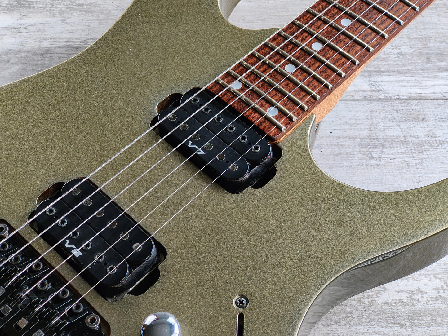 Made in Japan in 1996 (unlike a vast majority of these RG320B's that were made in Korea). The RG320B features a resoncast body with a Pewter finish bolted to a Wizard maple neck with a 24 fret fingerboard (648mm scale length, 43mm nut width), this one weighs 3.6kg's. Loaded with an Ibanez V7/V8 humbucker combination controlled by master volume/tone controls and a three-way selector.