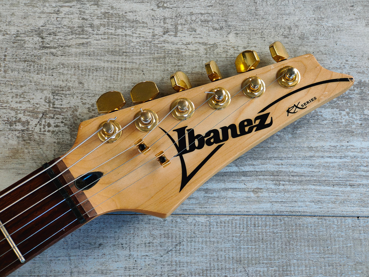 The RX170 features an alder body (with a quilt laminate) bolted to a maple neck (ultra profile) with a 22-fret rosewood fingerboard. Components include a TZ synchronized tremolo bridge and Ibanez Powersound pickups with a pair of humbuckers flanking a single-coil.