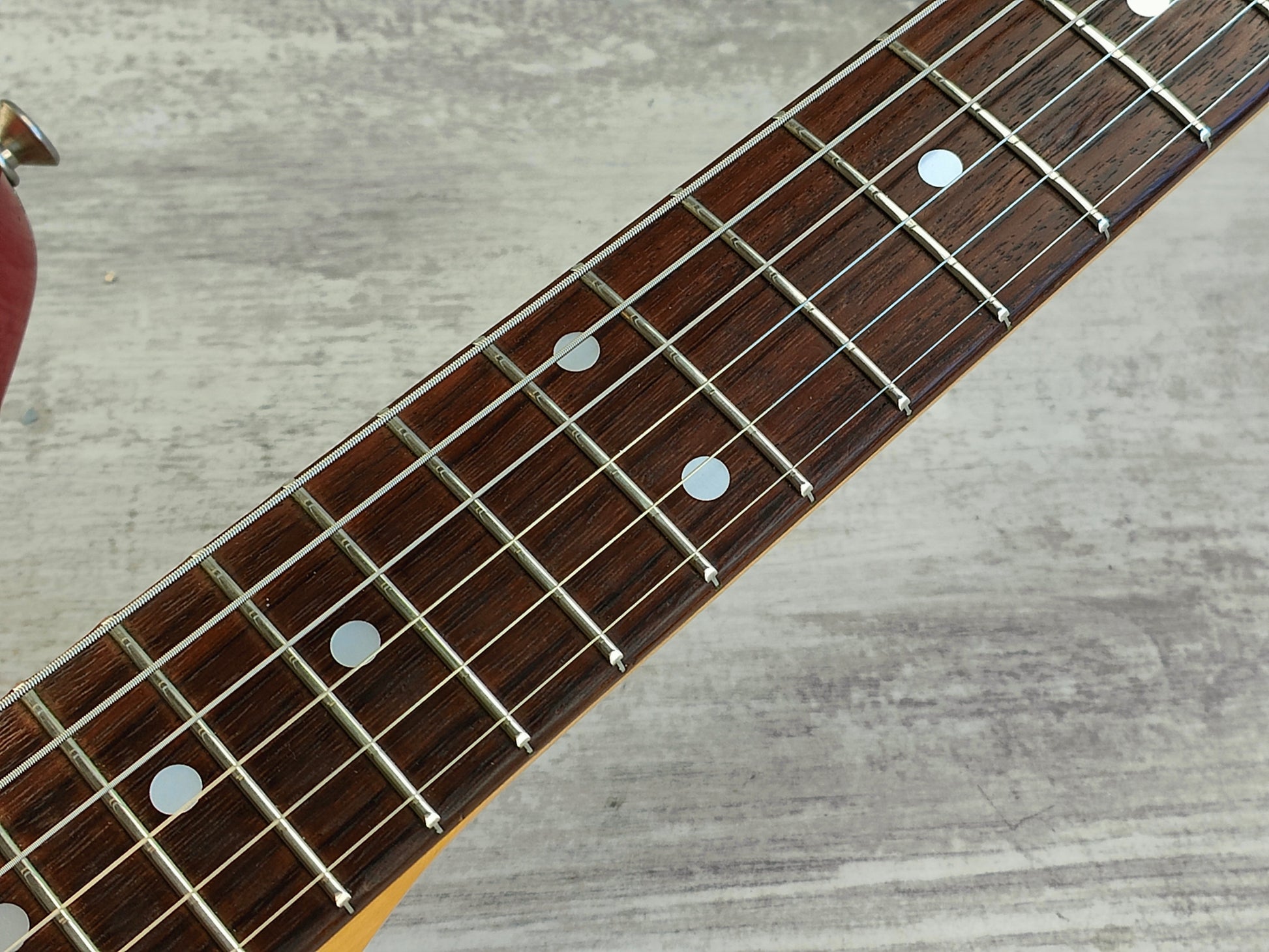Very good used condition with basic signs of wear and tear as pictured. Given a full professional setup and service prior to listing (including the aforementioned humbucker routing), the neck is straight and the truss adjusts well, the frets have plenty of life and are shiny and smooth with only very slight playwear.