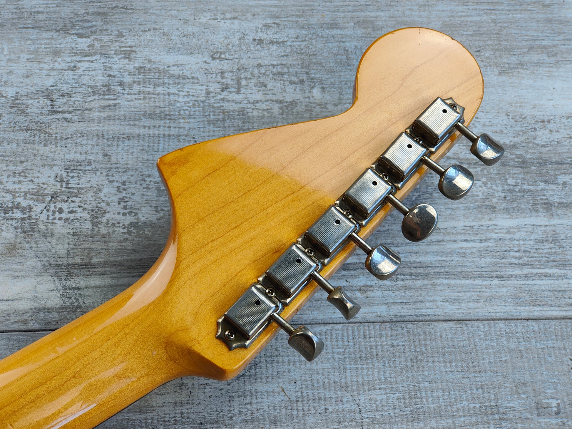 Made in Japan in 1999 by the Tokai factory, this JG66 Jaguar was a "Vintage Collection" model from Fender's "Collectors" series. Alder body with a maple neck and 22 fret rosewood fingerboard (7.25" radius, 43mm nut width, 610mm scale length), it weighs 4kg's. Loaded with the original vintage-style tuners and a Tune-O-Matic bridge along with the original Fender JG-SINGLE pickup in the neck position and a professionally routed Gotoh humbucker in the bridge position for the Cobain style sound.The wiring and switching is all original.