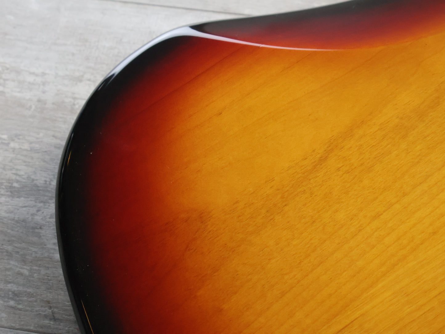 Alder body with a maple neck and 22 fret rosewood fingerboard (7.25" radius, 43mm nut width, 610mm scale length), it weighs 3.9kg's. Loaded with the original vintage-style tuners and classic Jaguar tremolo system along with JG-SINGLE pickups and standard Jaguar wiring.