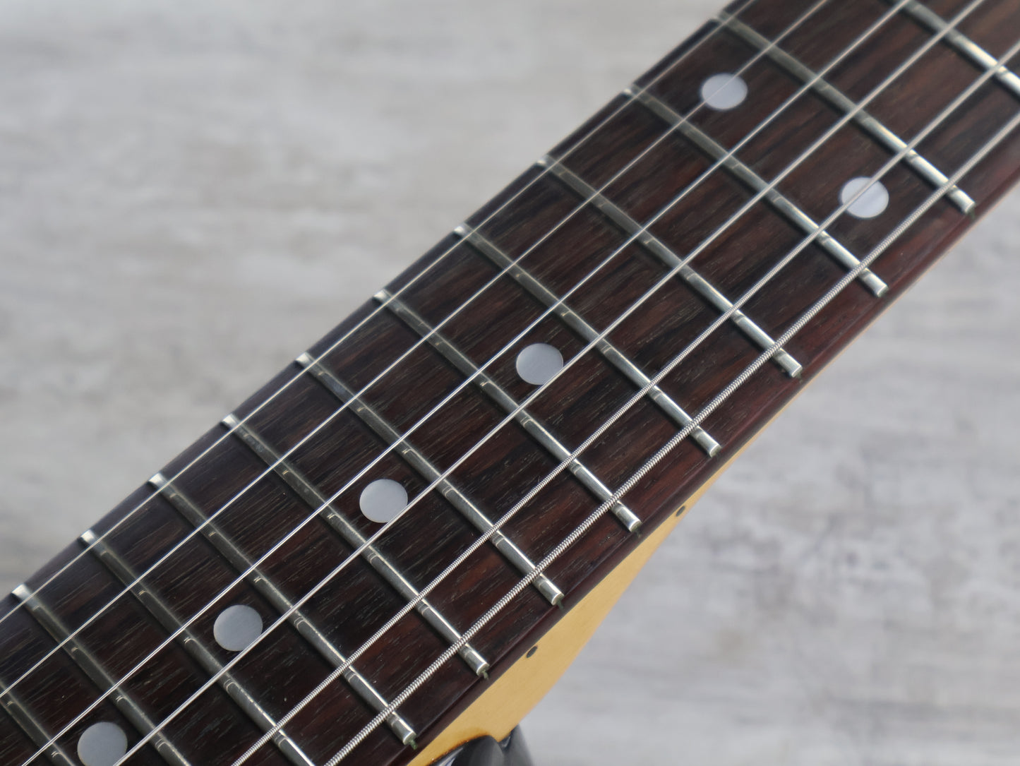 Made in Japan in 1997 by the Tokai factory, this JG66 Jaguar was a "Vintage Collection" model from Fender's "Collectors" series. The Left Handed versions of these were a custom order model and didn't appear in any catalogs, making them almost impossible to find!