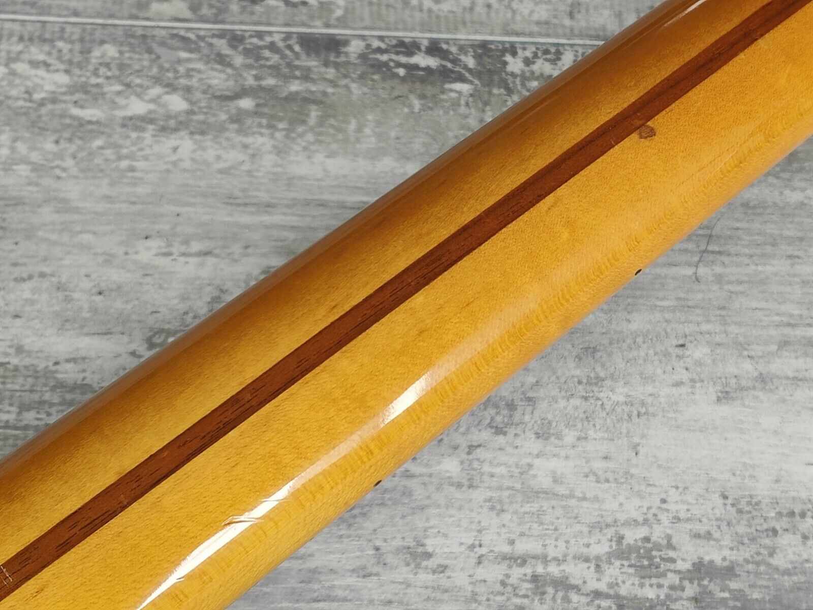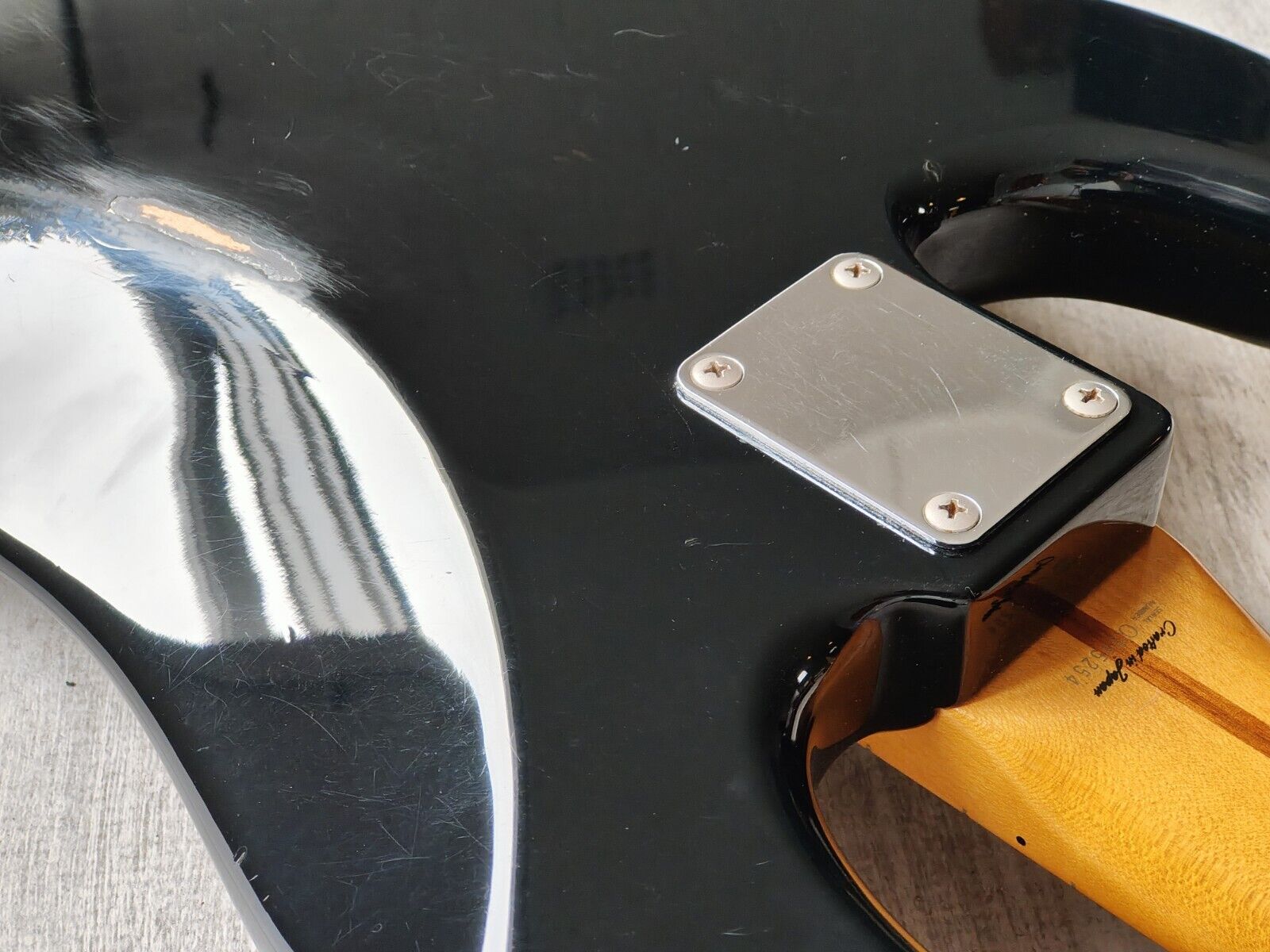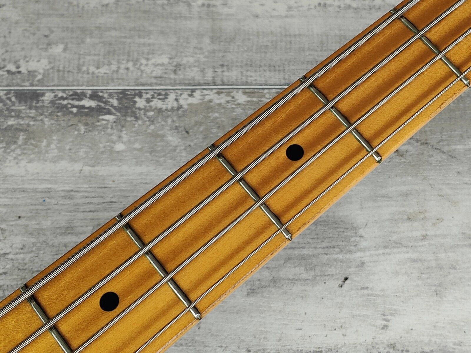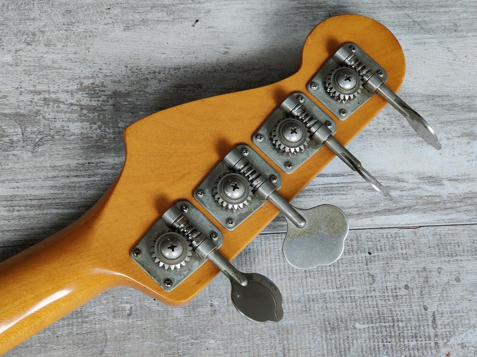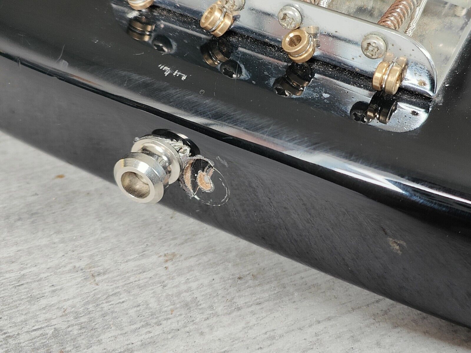 Made by the Tokai factory in Japan for the 1997 catalog, the PB57-53 was Fender Japan's 1957 Precision Bass reissue without the price tag. Basswood body with a gloss black finish, 20 fret maple neck (7.25" radius, 42mm nut width), it weighs just over 4kg's. Seems to be all original except a brand new bone nut that was installed prior to listing, factory loaded with full sized tuners and a Fender Japan P bass pickup controlled by volume and tone knobs.
